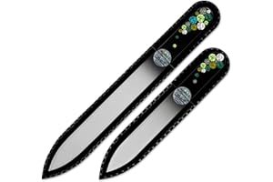 スワロブスキーの装飾を施したガラス製ネイルファイル2つセット、ブラックのベルベットケース付き、本物のチェコ製強化ガラス、ハンドメイドのクリスタルネイルファイル