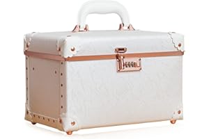 urecity ポータブルメイクアップトレインケース コスメティックオーガナイザーケース レザー収納ボックス コンビネーションロック付き