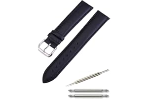 Calme(カルム) 腕時計 ベルト 本革 レザー 時計 バンド スムースレザー 交換ベルト 12? ? 24? 交換説明書付き (18?, ブラック)
