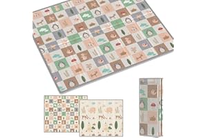 プレイマット 赤ちゃん 厚手 ベビーマット 折り畳み式 大判 ベビープレイマット 滑り止め お昼寝マット 防水 防音マット 収納袋付き 収納しやすい 持ち運び便利 ピクニック 幼稚園 保育園 (緑樹+楽園, 180×200×2cm)