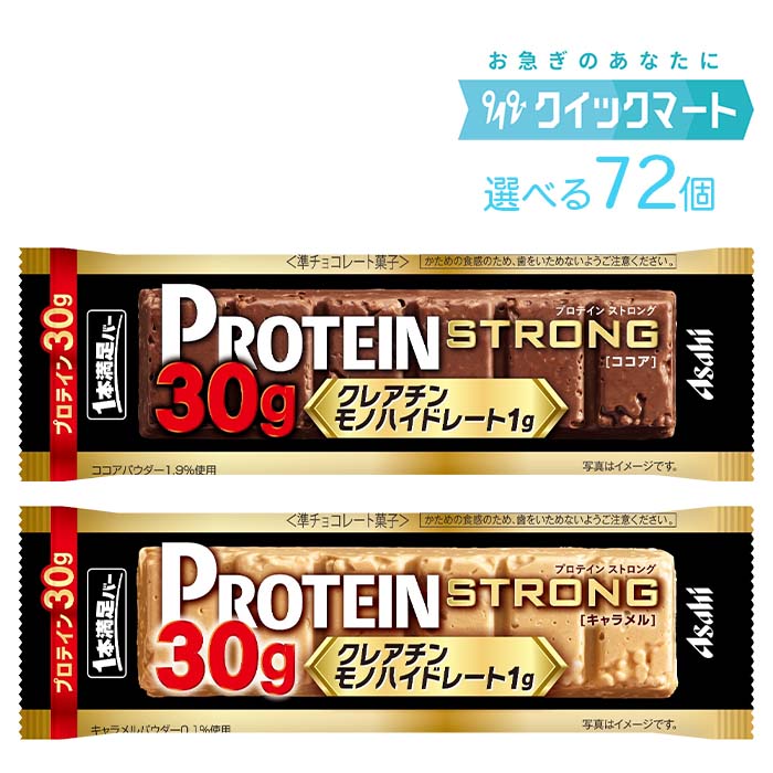 ■内容量 9本×8箱(計72本) 9本単位でお好みで選択してください。 ■賞味期限 製造より1年間 ※賞味期限は在庫状況により短くなる場合がございます。 ご購入前に賞味期限の確認を希望される場合は、事前にお問い合わせいただけますようお願い申し上げます。 ■保存方法 高温多湿を避けて保管してください ■商品説明 【プロテインストロング ココア】 おいしく手軽にプロテイン30g、クレアチンモノハイドレート1gが摂れるシリアルチョコタイプのプロテインバーです。 プロテイン30gを配合しながらも、味わいにもこだわり、毎日続けたくなるおいしさを実現しました。 食べ応えのあるボリューム感と大豆パフのザクザク食感で、ココア風味のチョコのマイルドな甘さを楽しむことができます。 パッケージはプロテインシリーズを象徴する「黒」をベースに、“強さ・パワー”を感じさせる「金」を採用しました。 本格的なトレーニングをサポートする栄養設計を視覚的にも力強く表現しています。 もっとパワーアップしたい方や、積極的に栄養を摂りたい方におすすめです。 【プロテインストロング キャラメル】 おいしく手軽にプロテイン30g、クレアチンモノハイドレート1gが摂れるシリアルチョコタイプのプロテインバーです。 プロテイン30gを配合しながらも、味わいにもこだわり、毎日続けたくなるおいしさを実現しました。 食べ応えのあるボリューム感と大豆パフのザクザク食感で、ほんのり塩味を効かせたキャラメル風味のコクのある甘さを楽しむことができます。 パッケージはプロテインシリーズを象徴する「黒」をベースに、“強さ・パワー”を感じさせる「金」を採用しました。 本格的なトレーニングをサポートする栄養設計を視覚的にも力強く表現しています。 もっとパワーアップしたい方や、積極的に栄養を摂りたい方におすすめです。 ※リニューアルに伴い、パッケージ・内容等予告なく変更する場合がございます。 予めご了承ください。 Asahi あさひ プロテイン ダイエット 筋トレ 間食 朝食 昼食 夜食 代わり 小腹満たし エネルギー補給 置き換え 高タンパク 美味しい まとめ買い 栄養バランス タンパク質 栄養補給 栄養サポート スポーツ 部活 差し入れ イベント 夜勤 お菓子 おかし おやつ トレーニング アサヒ 1本満足バー プロテインストロング 9本単位で選べる72個セット プロテインバー 17,280 ~