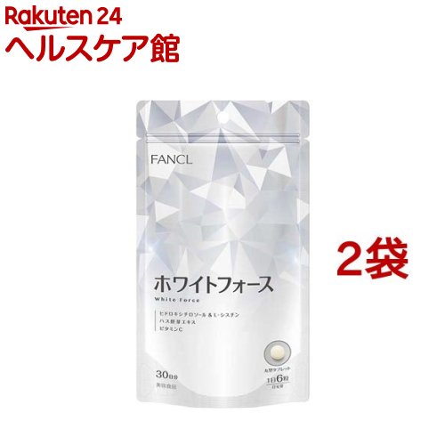 お店TOP>健康食品>美容サポート>美容サポート食品>美容サポートサプリメント>ファンケル ホワイトフォース (180粒入*2袋セット)【ファンケル ホワイトフォースの商品詳細】●ファンケルのヒドロキシチロソール&L-シスチンの組み合わせに加え、生まれ変わりのためのハス胚芽エキスがアプローチ。 ●毎日コツコツ対策したい方に手軽な粒タイプ。 【召し上がり方】約30日分 180粒1日摂取安量:6粒目安量を守り、水などと一緒にお召し上がりください。 【品名・名称】ヒドロキシチロソール・L-シスチン・ビタミンC含有食品【ファンケル ホワイトフォースの原材料】オリーブ葉エキス末(オリーブ葉エキス、でんぷん分解物)、でんぷん、ハス胚芽エキス末/セルロース、ビタミンC、L-シスチン、ヒドロキシプロピルセルロース、ナイアシンアミド、ステアリン酸カルシウム、シェラック【栄養成分】1日6粒(1506mg)当たりエネルギー:4.6kcal、たんぱく質:0.2g、脂質:0.05g、炭水化物:1.2g(糖質:0.47g、食物繊維:0.74g)、食塩相当量:0.0003g、ビタミンC:300mg、ナイアシン:15mgヒドロキシチロソール:20mg、L-シスチン:240mg、ハス胚芽エキス末:10mg【規格概要】内容量:45.2g(251mg*180粒)【保存方法】直射日光と高温・多湿の場所を避けて保存してください。 【注意事項】・原材料をご確認の上、食物アレルギーのある方は摂取しないでください。 また、体質や体調によりまれに合わない場合があります。 その場合は摂取を中止してください。 ・妊娠・授乳中の方、お子様は摂取しないでください。 ・薬を服用・通院中の方は医師にご相談ください。 ・開封後はなるべく早くお召し上がりください。 【原産国】日本【ブランド】ファンケル【発売元、製造元、輸入元又は販売元】ファンケル※説明文は単品の内容です。 商品に関するお電話でのお問合せは、下記までお願いいたします。 化粧品に関するお問合せ:美容相談室 0120-35-2222健康食品に関するお問合せ:サプリメント相談室 0120-750-210リニューアルに伴い、パッケージ・内容等予告なく変更する場合がございます。 予めご了承ください。 ・単品JAN:4908049463526ファンケル231-8528 神奈川県横浜市中区山下町89-1 ※お問合せ番号は商品詳細参照広告文責:楽天グループ株式会社電話:050-5577-5042[ビタミンサプリメント/ブランド:ファンケル/] ファンケル ホワイトフォース(180粒入*2袋セット)【ファンケル】[ビタミンc ナイアシン シスチン 美容サプリ] 4,750 ~
