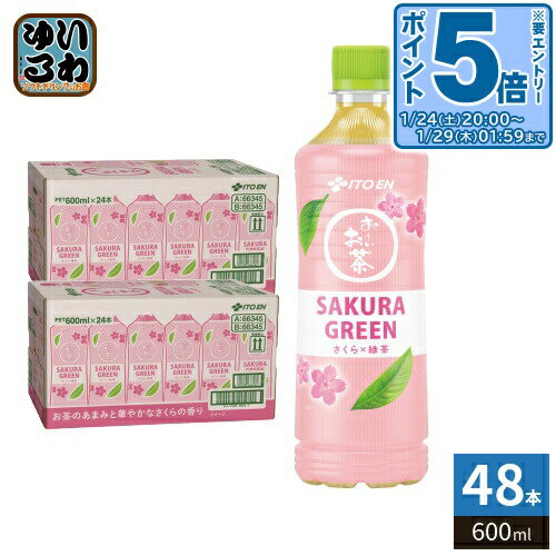 > こちらの商品の単品・まとめ買いはこちら【一個あたり 123円(税込)】【賞味期間】製造後9ヶ月【商品説明】「さくら×お茶」でつくる、華やかな香りの緑茶飲料。 1.「さくら×お茶」でつくる、華やかな香りの緑茶飲料。 さくらの華やかな香りとお茶のあまみ。 2.国産茶葉を100%使用。 さくらと相性の良い、うまみが強い茶葉を選定。 3.まろやかな“お茶のあまみ”を引き出す抽出。 苦み渋みが抑えられ、あまみ際立つお茶の味わいを実現。 4.塩漬けの桜葉を使用。 自然で華やかなさくらの香りと、桜餅を思わせる上品な風味。 【名称および品名】さくら緑茶(清涼飲料水)【栄養成分】たんぱく質0g、脂質0g、炭水化物0g、糖類0g、食塩相当量0.02g〜0.06g【原材料】緑茶、塩漬桜葉、さくら花エキス、さくら葉エキス、【保存方法】常温【製造者、販売者、又は輸入者】株式会社伊藤園【アレルギー特定原材料】無し※北海道・沖縄県・離島(一部)へのお届けは決済時に送料無料となっていても追加送料が必要です。 (コカ・コーラ直送を除く)北海道1個口 715円(税込)、沖縄県1個口 2420円(税込)※離島・一部地域は追加送料がかかる場合があります。 追加送料の詳細は注文確定メールにてご案内いたします。 ※本商品はご注文タイミングやご注文内容によっては、購入履歴からのご注文キャンセル、修正を受け付けることができない場合がございます。 変更・修正ができない場合は、メール、お電話にてご連絡をお願い致します。 ■ 法人・団体のお客様 大口購入のご相談承ります ■法人のお客様、各種団体のお客様で、まとまった数量でのご購入をご検討の際は、お気軽にご相談ください。 お客様のご要望に合わせて柔軟に対応させていただきます。 まずはお気軽にお問い合わせフォームよりご連絡ください。 送料無料 数量限定 お茶 ティー 緑茶飲料 桜の香り 桜 さくら 桜葉の塩漬け ブレンド Sakura Green Tea グリーンティー 桜デザイン 一番茶 桜茶 チェリーブロッサム 桜緑茶 さくら ぐりーん 季節限定 期間限定 春限定 PET 春フレーバー itoen いとうえん 分類: 500ml (350ml〜699ml) ケース まとめ買い セット 4901085663455 伊藤園 お〜いお茶 SAKURA GREEN 600ml ペットボトル 48本 (24本入×2 まとめ買い) お茶 緑茶飲料 季節限定 数量限定 5,891 ~