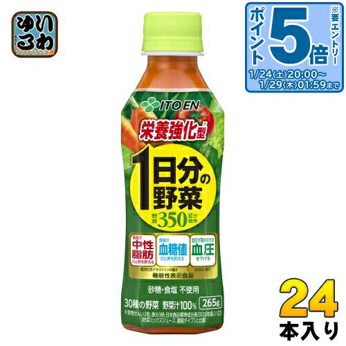 > こちらの商品の単品・まとめ買いはこちら【一個あたり 146円(税込)】【賞味期間】製造後9ヶ月【商品説明】1日の野菜摂取目標量350g分使用した野菜汁100%飲料。 食後の「中性脂肪」・「血糖値」の上昇を抑え、高めの「血圧」を下げるトリプルヘルスクレームの機能性表示食品の野菜汁100%飲料です。 食事から摂取した糖や脂肪の吸収を抑えることにより、食後の血糖値や血中中性脂肪の上昇を抑制する難消化性デキストリン(食物繊維)と、血圧が高めの方の血圧を下げるGABAが含まれています。 中性脂肪、血糖値、血圧が気になる方におすすめです。 1日分の野菜を使用しています。 【広告文責】 株式会社ナカヱ 050-3786-3286【メーカー名】 株式会社伊藤園【製造国】 日本製【商品区分】 機能性表示食品届出番号:F973【名称および品名】野菜混合飲料【エネルギー】1本あたり98kcal【栄養成分】たんぱく質2.9g 炭水化物25.2g 糖質17.0g 糖類13.0g 食物繊維8.0g 食塩相当量0.04〜0.55g 亜鉛0.2〜1.0g カリウム780mg カルシウム150mg 鉄2.6〜5.1mg マグネシウム43〜70mg ビタミンA 569〜1518μg ビタミンC 120〜400mg ビタミンE2.0〜12.0mg ビタミンK 5〜22μg 葉酸13〜142μg β-カロテン5742〜13427μg リコピン14〜32mg 難消化性デキストリン(食物繊維)5.0g GABA 75mg【原材料】トマト、にんじん、赤ピーマン、きゅうり、インゲン豆、大根、ピーマン、メキャベツの葉、ケール、レタス、アスパラガス、カリフラワー、グリーンピース、冬瓜、緑豆スプラウト(もやし)、ブロッコリー、ゴーヤ、ごぼう、セロリ、モロヘイヤ、かぼちゃ、ヤーコン、あしたば、小松菜、パセリ、クレソン、キャベツ、ラディッシュ、ほうれん草、三つ葉、レモン果汁、難消化性デキストリン、海藻カルシウム、鉄酵母、ライスマグネシウム、ビタミンC【保存方法】常温【製造者、販売者、又は輸入者】株式会社伊藤園【変更事項】ページリニューアル日:2024/06/28変更内容:パッケージ※北海道・沖縄県・離島(一部)へのお届けは決済時に送料無料となっていても追加送料が必要です。 (コカ・コーラ直送を除く)北海道1個口 715円(税込)、沖縄県1個口 2420円(税込)※離島・一部地域は追加送料がかかる場合があります。 追加送料の詳細は注文確定メールにてご案内いたします。 ※本商品はご注文タイミングやご注文内容によっては、購入履歴からのご注文キャンセル、修正を受け付けることができない場合がございます。 変更・修正ができない場合は、メール、お電話にてご連絡をお願い致します。 ■ 法人・団体のお客様 大口購入のご相談承ります ■法人のお客様、各種団体のお客様で、まとまった数量でのご購入をご検討の際は、お気軽にご相談ください。 お客様のご要望に合わせて柔軟に対応させていただきます。 まずはお気軽にお問い合わせフォームよりご連絡ください。 送料無料 野菜ジュース じゅーす やさい飲料 1日分の野菜 いとーえん 栄養強化型 機能性表示食品 中性脂肪 血糖値 血圧 健康 けんこう 栄養バランス 食生活 糖 ギャバ 食物繊維 脂肪の吸収を抑える 30種の野菜 ケース まとめ買い セット 4901085624432 伊藤園 栄養強化型 1日分の野菜 265g ペットボトル 24本入 野菜ジュース 機能性表示食品 GABA 3,499 ~