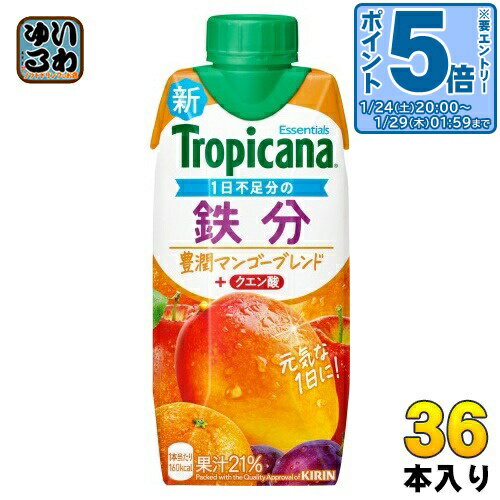 > こちらの商品の単品・まとめ買いはこちら【一個あたり 142円(税込)】【賞味期間】製造後9ヶ月【商品説明】手軽においしく栄養が摂れる、毎日の健康をサポートする果実飲料。 【名称および品名】果実飲料【エネルギー】製品1本/330mlあたり160kcal【栄養成分】たんぱく質0g、脂質0g、炭水化物40g、ナトリウム7mg、糖質未測定g、食物繊維未測定g、糖類36g、鉄5.3mg、クエン酸0.69g【原材料】果実(マンゴー(メキシコ)、オレンジ、りんご、プルーン)、砂糖類(果糖ぶどう糖液糖、砂糖)/クエン酸、香料、ピロリン酸鉄、酸化防止剤(ビタミンC)【保存方法】常温【製造者、販売者、又は輸入者】キリンビバレッジ株式会社【アレルギー特定原材料】オレンジ、りんご【変更事項】ページリニューアル日:2025/05/19変更内容:パッケージ※北海道・沖縄県・離島(一部)へのお届けは決済時に送料無料となっていても追加送料が必要です。 (コカ・コーラ直送を除く)北海道1個口 715円(税込)、沖縄県1個口 2420円(税込)※離島・一部地域は追加送料がかかる場合があります。 追加送料の詳細は注文確定メールにてご案内いたします。 ※本商品はご注文タイミングやご注文内容によっては、購入履歴からのご注文キャンセル、修正を受け付けることができない場合がございます。 変更・修正ができない場合は、メール、お電話にてご連絡をお願い致します。 ■ 法人・団体のお客様 大口購入のご相談承ります ■法人のお客様、各種団体のお客様で、まとまった数量でのご購入をご検討の際は、お気軽にご相談ください。 お客様のご要望に合わせて柔軟に対応させていただきます。 まずはお気軽にお問い合わせフォームよりご連絡ください。 送料無料 果実飲料 果汁飲料 Essentials Tropicana MANGO BLEND 1日不足分の鉄分 マンゴーブレンド クエン酸 果汁 ミックスジュース KIRIN LLプリズマ容器 ケース まとめ買い セット 4909411087128 キリン トロピカーナ エッセンシャルズ 鉄分 330ml 紙パック 36本 (12本入×3 まとめ買い) 果実飲料 果汁飲料 豊潤マンゴーブレンド 5,077 ~