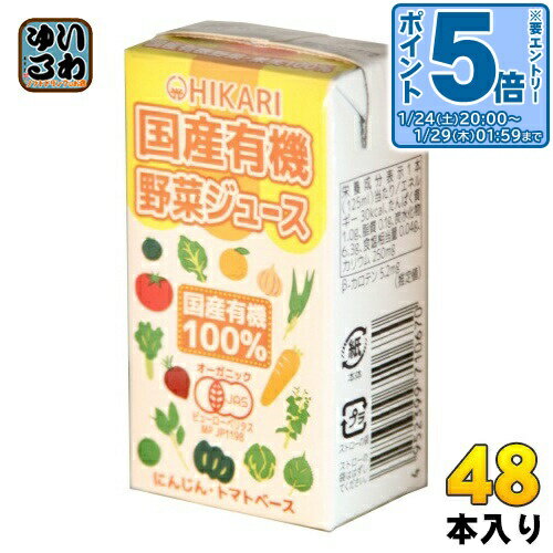 > こちらの商品の単品・まとめ買いはこちら【一個あたり 157円(税込)】【賞味期間】製造後9ヶ月【商品説明】国産有機野菜を使用し、砂糖・食塩無添加で、にんじん・トマトベースのさらっと飲みやすい有機JAS認証のにんじんミックスジュースです。 【名称および品名】有機にんじんミックスジュース【エネルギー】1本(125ml)あたり30kcal【栄養成分】たんぱく質 1.0g、脂質 0.1g、炭水化物 6.3g、食塩相当量 0.04g、カリウム 250mg【原材料】有機濃縮にんじん(有機にんじん(国産))、野菜(有機トマト(濃縮還元)、有機ケール(濃縮還元)、有機ビーツ(濃縮還元)、有機かぼちゃ、有機レタス、有機小松菜、有機エンサイ、有機つるむらさき、有機モロヘイヤ、有機たまねぎ、有機青じそ)、果実(有機ゆうこ、有機だいだい、有機すだち)【保存方法】常温【製造者、販売者、又は輸入者】光食品株式会社【変更事項】ページリニューアル日:2024/12/27変更内容:賞味期間延長※北海道・沖縄県・離島(一部)へのお届けは決済時に送料無料となっていても追加送料が必要です。 (コカ・コーラ直送を除く)北海道1個口 715円(税込)、沖縄県1個口 2420円(税込)※離島・一部地域は追加送料がかかる場合があります。 追加送料の詳細は注文確定メールにてご案内いたします。 ※本商品はご注文タイミングやご注文内容によっては、購入履歴からのご注文キャンセル、修正を受け付けることができない場合がございます。 変更・修正ができない場合は、メール、お電話にてご連絡をお願い致します。 ■ 法人・団体のお客様 大口購入のご相談承ります ■法人のお客様、各種団体のお客様で、まとまった数量でのご購入をご検討の際は、お気軽にご相談ください。 お客様のご要望に合わせて柔軟に対応させていただきます。 まずはお気軽にお問い合わせフォームよりご連絡ください。 送料無料 野菜ジュース 人参ミックス 国産有機 Organic オーガニック トマトベース 砂糖不使用 国産有機果実 香料不使用 保存料不使用 着色料不使用 こくさん 野菜じゅーす HIKARI JAS ケース まとめ買い セット 4952399710670 光食品 国産有機 野菜ジュース 125ml 紙パック 48本 (24本入×2 まとめ買い) 野菜ミックスジュース 食塩無添加 7,516 ~