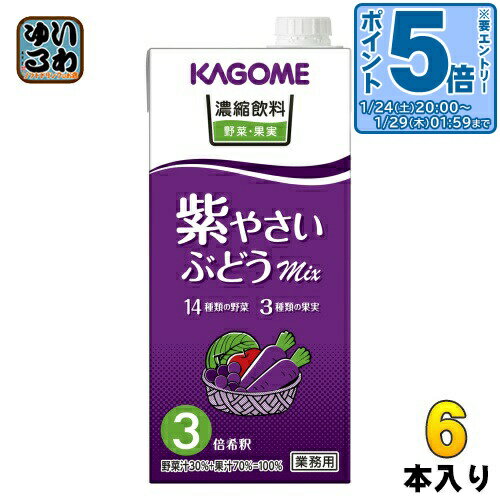 > こちらの商品の単品・まとめ買いはこちら【一個あたり 726円(税込)】【賞味期間】製造後9ヶ月【商品説明】にんじんなど14種類の野菜と、ぶどうやりんごなどのフルーツをブレンドしたミックス飲料で、紫の色合いとフルーティーな味わいが特長です。 3倍に濃縮してありますので、本品1L に水2Lを加えてご提供ください。 なお果汁70%+野菜汁30%の設計です。 【名称および品名】果実・野菜濃縮飲料(3倍希釈)【エネルギー】コップ1杯/3倍希釈後200mlあたり78kcal【栄養成分】タンパク質: 0.4g 、脂質: 0g 、炭水化物:19.2g、食塩相当量: 0.07g【原材料】果実(りんご(輸入)、ぶどう、レモン)、野菜(にんじん、ケール、ほうれん草、アスパラガス、クレソン、パセリ、かぼちゃ、レタス、キャベツ、ビート、だいこん、はくさい、たまねぎ、セロリ)【保存方法】常温【製造者、販売者、又は輸入者】カゴメ株式会社【アレルギー特定原材料】りんご【変更事項】ページリニューアル日:2021/11/30変更内容:栄養成分※北海道・沖縄県・離島(一部)へのお届けは決済時に送料無料となっていても追加送料が必要です。 (コカ・コーラ直送を除く)北海道1個口 715円(税込)、沖縄県1個口 2420円(税込)※離島・一部地域は追加送料がかかる場合があります。 追加送料の詳細は注文確定メールにてご案内いたします。 ※本商品はご注文タイミングやご注文内容によっては、購入履歴からのご注文キャンセル、修正を受け付けることができない場合がございます。 変更・修正ができない場合は、メール、お電話にてご連絡をお願い致します。 ■ 法人・団体のお客様 大口購入のご相談承ります ■法人のお客様、各種団体のお客様で、まとまった数量でのご購入をご検討の際は、お気軽にご相談ください。 お客様のご要望に合わせて柔軟に対応させていただきます。 まずはお気軽にお問い合わせフォームよりご連絡ください。 送料無料 野菜ジュース 紫 果汁ミックス飲料 飲料 やさいジュース ドリンク ホテル用 かごめ 濃縮 業務用 1000ml 大容量 希釈 レストラン 3倍希釈 ブドウ フルーツ むらさき mix ケース まとめ買い セット 1リットル 4901306053454 〔エントリーでポイント5倍!〕 カゴメ 濃縮飲料 紫やさい・ぶどうミックス 3倍希釈 1L 紙パック 6本入 野菜ジュース 業務用 4,354 ~