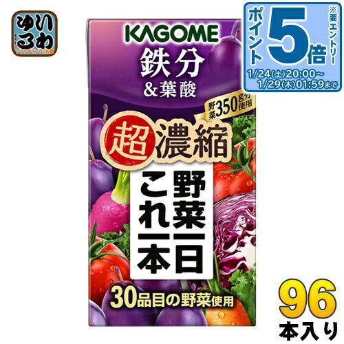 > こちらの商品の単品・まとめ買いはこちら【一個あたり 102円(税込)】【賞味期間】製造後9ヶ月【商品説明】野菜350g分(※)を125mlに濃縮した野菜・果実ミックス濃縮飲料です。 ほうれん草やケール等の30品目の野菜とプルーンを使用。 鉄分と葉酸をしっかり摂れます。 ※野菜飲料は原料野菜の全成分を含むものではありませんが、不足しがちな野菜を補うためにお役立てください。 1日分の野菜を摂取できます。 【名称および品名】野菜・果実ミックス濃縮飲料【エネルギー】125mlあたり64kcal【栄養成分】タンパク質: 2.4g 、脂質: 0g 、炭水化物:14.5g、ナトリウム:、食塩相当量: 0.005〜0.6g、カリウム:230〜1500mg、カルシウム:3〜76mg、鉄:0.23〜5.13mg、マグネシウム:9〜80mg、ビタミンE:0.8〜3.7mg、ビタミンK:0〜20μg、葉酸:25〜160μg、リコピン:10〜29mg、β-カロテン:1600〜9100μg【原材料】野菜(トマト(輸入)、にんじん、ほうれん草、ケール、メキャベツ(プチヴェール)、赤ピーマン、ブロッコリー、あしたば、ビート、チンゲンサイ、小松菜、かぼちゃ、パセリ、クレソン、アスパラガス、セロリ、しょうが、とうもろこし、ごぼう、グリーンピース、紫いも、キャベツ、レタス、たまねぎ、だいこん、紫キャベツ、赤じそ、カリフラワー、なす、はくさい)、レモン、プルーンエキス【保存方法】常温【製造者、販売者、又は輸入者】カゴメ株式会社【アレルギー特定原材料】0【変更事項】ページリニューアル日:2024/05/11変更内容:栄養成分表示※北海道・沖縄県・離島(一部)へのお届けは決済時に送料無料となっていても追加送料が必要です。 (コカ・コーラ直送を除く)北海道1個口 715円(税込)、沖縄県1個口 2420円(税込)※離島・一部地域は追加送料がかかる場合があります。 追加送料の詳細は注文確定メールにてご案内いたします。 ※本商品はご注文タイミングやご注文内容によっては、購入履歴からのご注文キャンセル、修正を受け付けることができない場合がございます。 変更・修正ができない場合は、メール、お電話にてご連絡をお願い致します。 ■ 法人・団体のお客様 大口購入のご相談承ります ■法人のお客様、各種団体のお客様で、まとまった数量でのご購入をご検討の際は、お気軽にご相談ください。 お客様のご要望に合わせて柔軟に対応させていただきます。 まずはお気軽にお問い合わせフォームよりご連絡ください。 送料無料 送料無料 鉄分 葉酸 ほうれん草 ケール プルーン シニア向けサイズ 小容量紙パック 飲みきり かごめ ケース まとめ買い セット 49878554 カゴメ 野菜一日これ一本 超濃縮 鉄分&葉酸 125ml 紙パック 96本 (24本入×4 まとめ買い) 野菜ジュース 食塩無添加 砂糖不使用 鉄分 プルーンミックス 9,745 ~