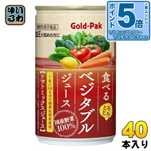 > こちらの商品の単品・まとめ買いはこちら【一個あたり 142円(税込)】※輸送時の横揺れによる缶製品の多少の凹みは避けられません。 飲用に差支えない凹みなどは返品保証の対象外とさせていただきます。 予めご了承頂けますようお願い申し上げます。 【賞味期間】製造後18ヶ月【商品説明】こんな野菜ジュースが欲しかった!! とろとろの濃厚食感の食べるベジタブルジュースは「高めの血圧を下げる」機能のあるGABAを含んだ機能性表示食品です。 さらっとした野菜ジュースに物足りなさを感じる濃厚な飲み応えを好む方に。 トマトを主体に国産の野菜だけを厳選使用した、野菜のおいしさ100%ジュースです。 野菜のうまみと濃厚なとろみ、とろとろの新食感が魅力の、まさに『食べるジュース』です。 【1缶(160g)にんじん3本分(450g)使用】※加工によって失われる成分があるため、生にんじん全ての栄養素を含むものではありません。 【広告文責】 株式会社ナカヱ 050-3786-3286【メーカー名】 ゴールドパック株式会社【製造国】 日本製【商品区分】 機能性表示食品【名称および品名】トマトミックスジュース【エネルギー】1缶(160g)あたり50kcal【栄養成分】たんぱく質 1.4g、脂質 0g、炭水化物 11.5g、食塩相当量 0.02〜0.10g、カリウム 540mg、ビタミンA 300〜800μg、機能性関与成分 GABA20mg【原材料】トマトジュース(濃縮トマト還元)(トマト(国産))、野菜ジュース(にんじん(濃縮還元)、にんじん、ほうれん草(濃縮還元)、ケール(濃縮還元)、小松菜(濃縮還元)、野沢菜(濃縮還元)、かぼちゃ)、レモン果汁【保存方法】常温【製造者、販売者、又は輸入者】ゴールドパック株式会社【アレルギー特定原材料】なし※北海道・沖縄県・離島(一部)へのお届けは決済時に送料無料となっていても追加送料が必要です。 (コカ・コーラ直送を除く)北海道1個口 715円(税込)、沖縄県1個口 2420円(税込)※離島・一部地域は追加送料がかかる場合があります。 追加送料の詳細は注文確定メールにてご案内いたします。 ※本商品はご注文タイミングやご注文内容によっては、購入履歴からのご注文キャンセル、修正を受け付けることができない場合がございます。 変更・修正ができない場合は、メール、お電話にてご連絡をお願い致します。 ■ 法人・団体のお客様 大口購入のご相談承ります ■法人のお客様、各種団体のお客様で、まとまった数量でのご購入をご検討の際は、お気軽にご相談ください。 お客様のご要望に合わせて柔軟に対応させていただきます。 まずはお気軽にお問い合わせフォームよりご連絡ください。 送料無料 野菜ジュース Gold Pak Gold-Pak トマトミックスジュース とろとろ 機能性表示食品 血圧が高めの方に 国産野菜100% ケース まとめ買い セット 4972251521138 〔エントリーでポイント5倍!〕 ゴールドパック 食べる ベジタブルジュース 160g 缶 40本 (20本入×2 まとめ買い) 野菜ジュース 機能性表示食品 GABA 5,659 ~