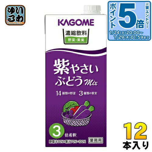 > こちらの商品の単品・まとめ買いはこちら【一個あたり 661円(税込)】【賞味期間】製造後9ヶ月【商品説明】にんじんなど14種類の野菜と、ぶどうやりんごなどのフルーツをブレンドしたミックス飲料で、紫の色合いとフルーティーな味わいが特長です。 3倍に濃縮してありますので、本品1L に水2Lを加えてご提供ください。 なお果汁70%+野菜汁30%の設計です。 【名称および品名】果実・野菜濃縮飲料(3倍希釈)【エネルギー】コップ1杯/3倍希釈後200mlあたり78kcal【栄養成分】タンパク質: 0.4g 、脂質: 0g 、炭水化物:19.2g、食塩相当量: 0.07g【原材料】果実(りんご(輸入)、ぶどう、レモン)、野菜(にんじん、ケール、ほうれん草、アスパラガス、クレソン、パセリ、かぼちゃ、レタス、キャベツ、ビート、だいこん、はくさい、たまねぎ、セロリ)【保存方法】常温【製造者、販売者、又は輸入者】カゴメ株式会社【アレルギー特定原材料】りんご【変更事項】ページリニューアル日:2021/11/30変更内容:栄養成分※北海道・沖縄県・離島(一部)へのお届けは決済時に送料無料となっていても追加送料が必要です。 (コカ・コーラ直送を除く)北海道1個口 715円(税込)、沖縄県1個口 2420円(税込)※離島・一部地域は追加送料がかかる場合があります。 追加送料の詳細は注文確定メールにてご案内いたします。 ※本商品はご注文タイミングやご注文内容によっては、購入履歴からのご注文キャンセル、修正を受け付けることができない場合がございます。 変更・修正ができない場合は、メール、お電話にてご連絡をお願い致します。 ■ 法人・団体のお客様 大口購入のご相談承ります ■法人のお客様、各種団体のお客様で、まとまった数量でのご購入をご検討の際は、お気軽にご相談ください。 お客様のご要望に合わせて柔軟に対応させていただきます。 まずはお気軽にお問い合わせフォームよりご連絡ください。 送料無料 野菜ジュース 紫 果汁ミックス飲料 飲料 やさいジュース ドリンク ホテル用 かごめ 濃縮 業務用 1000ml 大容量 希釈 レストラン 3倍希釈 ブドウ フルーツ むらさき mix ケース まとめ買い セット 1リットル 4901306053454 〔エントリーでポイント5倍!〕 カゴメ 濃縮飲料 紫やさい・ぶどうミックス 3倍希釈 1L 紙パック 12本 (6本入×2 まとめ買い) 野菜ジュース 業務用 7,931 ~