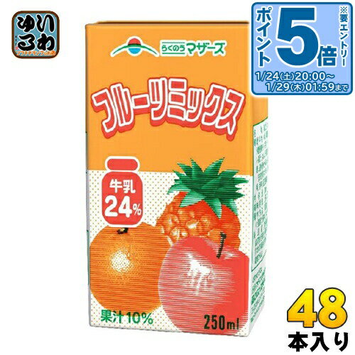 > こちらの商品の単品・まとめ買いはこちら【一個あたり 121円(税込)】【賞味期間】製造後89日【商品説明】熊本県産のおいしいミルクにフルーツ果汁をバランスよく加えた、やわらかな味わいのミックスジュースです。 フルーツ果汁はミルクとの相性にこだわり、甘みのあるアップル、ほどよい酸味のパイナップル、フレッシュ感のあるオレンジとみかん、4種類をバランスよく配合しました。 牛乳24%、フルーツ果汁10%使用。 【名称および品名】清涼飲料水【エネルギー】100mlあたり60kcal【栄養成分】たんぱく質 0.8g、脂質 0.9g、炭水化物 12.1g、食塩相当量 0.1g【原材料】牛乳、果糖ぶどう糖液糖、りんご果汁、パイン果汁、オレンジ果汁、砂糖、温州みかん果汁、食塩/安定剤(ペクチン)、酸味料、香料、紅花色素【保存方法】常温を超えない温度【製造者、販売者、又は輸入者】熊本県酪農業協同組合連合会【アレルギー特定原材料】乳、りんご、オレンジ※北海道・沖縄県・離島(一部)へのお届けは決済時に送料無料となっていても追加送料が必要です。 (コカ・コーラ直送を除く)北海道1個口 715円(税込)、沖縄県1個口 2420円(税込)※離島・一部地域は追加送料がかかる場合があります。 追加送料の詳細は注文確定メールにてご案内いたします。 ※本商品はご注文タイミングやご注文内容によっては、購入履歴からのご注文キャンセル、修正を受け付けることができない場合がございます。 変更・修正ができない場合は、メール、お電話にてご連絡をお願い致します。 ■ 法人・団体のお客様 大口購入のご相談承ります ■法人のお客様、各種団体のお客様で、まとまった数量でのご購入をご検討の際は、お気軽にご相談ください。 お客様のご要望に合わせて柔軟に対応させていただきます。 まずはお気軽にお問い合わせフォームよりご連絡ください。 送料無料 果汁 ミックス 牛乳 紙パック 250ml 分類: 200ml 紙パック (180ml〜250ml) ケース まとめ買い セット 4908839185010 〔エントリーでポイント5倍!〕 らくのうマザーズ フルーツミックス 250ml 紙パック 48本 (24本入×2 まとめ買い) 〔乳性飲料〕 5,806 ~