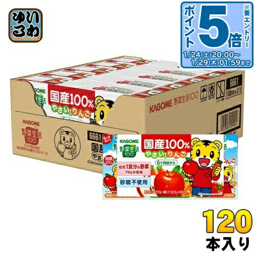 > こちらの商品の単品・まとめ買いはこちら【一個あたり 66円(税込)】【賞味期間】製造後9ヶ月【商品説明】国産の野菜と果実を使用した、子供が好きなりんご味の野菜・果実ミックスジュースです。 飲み切りやすい100mlサイズ。 生後6か月から飲めるりんご味の野菜・果実ミックスジュース。 お子様が大好きなりんご味で、手軽に幼児1食分の野菜(※70g分使用)補給。 砂糖・甘味料不使用で安心。 ※「4つの食品群の年齢別・性別・身体活動レベル別食品構成」(女子栄養大学)より算出した子ども(1〜2歳)の1日当たり野菜摂取目標量の1/3(60g)以上にあたる野菜70g 分。 【名称および品名】野菜・果実ミックスジュース【エネルギー】1本/100mlあたり36kcal【栄養成分】たんぱく質:0.3g、脂質:0g、炭水化物:8.7g、ナトリウム:0~33mg、糖質:8.5g、糖類:7.1g、食物繊維:0~0.4g、食塩相当量:0~0.09g、カリウム:26~320mg、カルシウム:0~28mg、β-カロテン:1000~3300μg【原材料】野菜(にんじん、トマト、ほうれん草、かぼちゃ)(国産)、りんご(国産)/クエン酸、香料【保存方法】常温【製造者、販売者、又は輸入者】カゴメ株式会社【アレルギー特定原材料】りんご※北海道・沖縄県・離島(一部)へのお届けは決済時に送料無料となっていても追加送料が必要です。 (コカ・コーラ直送を除く)北海道1個口 715円(税込)、沖縄県1個口 2420円(税込)※離島・一部地域は追加送料がかかる場合があります。 追加送料の詳細は注文確定メールにてご案内いたします。 ※本商品はご注文タイミングやご注文内容によっては、購入履歴からのご注文キャンセル、修正を受け付けることができない場合がございます。 変更・修正ができない場合は、メール、お電話にてご連絡をお願い致します。 ■ 法人・団体のお客様 大口購入のご相談承ります ■法人のお客様、各種団体のお客様で、まとまった数量でのご購入をご検討の際は、お気軽にご相談ください。 お客様のご要望に合わせて柔軟に対応させていただきます。 まずはお気軽にお問い合わせフォームよりご連絡ください。 送料無料 リンゴジュース 林檎 幼児用 しまじろう 小容量紙パック 健康 美容 飲み切りサイズ ケース まとめ買い セット 4901306009017 〔エントリーでポイント5倍!〕 カゴメ 野菜生活100 国産100%やさいとりんご 100ml 紙パック 120本 (30本入×4 まとめ買い) 野菜ジュース ミックスジュース 砂糖不使用 7,905 ~