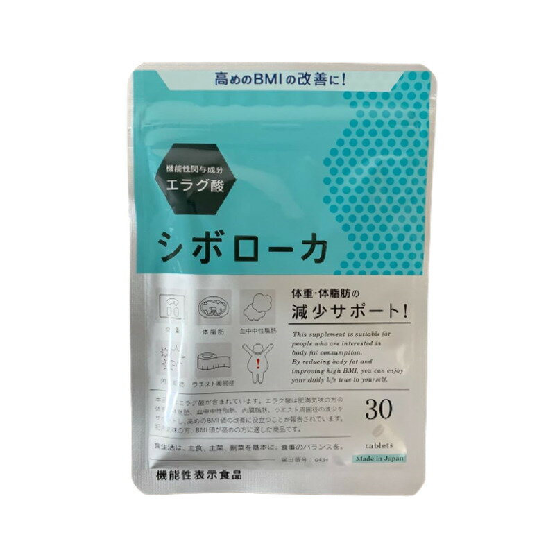 シボローカは機能性表示食品。 本品にはエラグ酸が含まれています。 エラグ酸は肥満気味の方の体重、体脂肪、血中中性脂肪、内臓脂肪、ウエスト周囲径の減少をサポートし、高めのBMI値の改善に役立つことが報告されています。 肥満気味の方、BMI値が高めの方に適した商品です。 1日2粒を目安に水などと一緒にお飲みください。 開封後はチャックをしっかりと閉めて保存し、なるべく早めにお召し上がりください。 広告文責:有限会社マルヨシプラス(080-7038-5719) メーカー名:株式会社ヘルスアップ 区分:日本製・機能性表示食品2