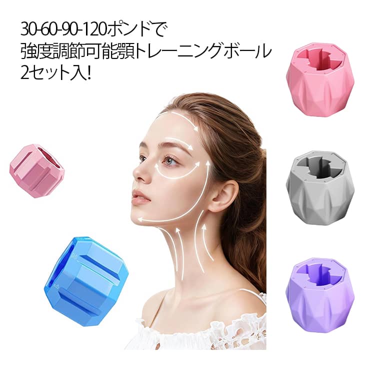 30-60-90-120ポンドで強度調節可能顎トレーニングボール 2セット入!【すっきりとしたフェイスラインを目指す】顎まわりの筋肉を動かすことで、フェイスラインのケアをサポート。 毎日の習慣に取り入れやすく、引き締まった印象づくりに役立ちます。 【食品級シリコン素材】口に入れて使用できる、食品グレードのシリコン素材を採用。 耐久性・耐熱性に優れ、お手入れもしやすく、清潔にお使いいただけます。 【手軽に、場所を選ばず使える】コンパクトで軽量なデザイン。 自宅はもちろん、オフィスや移動中など、スキマ時間を使って気軽にトレーニングできます。 【シンプルな使い方】口にくわえて、一定のリズムで噛むだけ。 簡単な動作で、毎日続けやすいフェイスケアアイテムです。 サイズ 2セット入 サイズについての説明 セット内容物:本体+ロープ+収納ボックス ※実寸はメジャー採寸の為、若干の誤差が生じる場合があります。 素材 食品級シリコン 色 灰 ピンク 紫 備考 ●サイズ詳細等の測り方はスタッフ間で統一、徹底はしておりますが、実寸は商品によって若干の誤差(1cm?3cm )がある場合がございますので、予めご了承ください。 ●製造ロットにより、細部形状の違いや、同色でも色味に多少の誤差が生じます。 ●パッケージは改良のため予告なく仕様を変更する場合があります。 ▼商品の色は、撮影時の光や、お客様のモニターの色具合などにより、実際の商品と異なる場合がございます。 あらかじめ、ご了承ください。 ▼生地の特性上、やや匂いが強く感じられるものもございます。 数日のご使用や陰干しなどで気になる匂いはほとんど感じられなくなります。 ▼同じ商品でも生産時期により形やサイズ、カラーに多少の誤差が生じる場合もございます。 ▼他店舗でも在庫を共有して販売をしている為、受注後欠品となる場合もございます。 予め、ご了承お願い申し上げます。 ▼出荷前に全て検品を行っておりますが、万が一商品に不具合があった場合は、お問い合わせフォームまたはメールよりご連絡頂けます様お願い申し上げます。 速やかに対応致しますのでご安心ください。