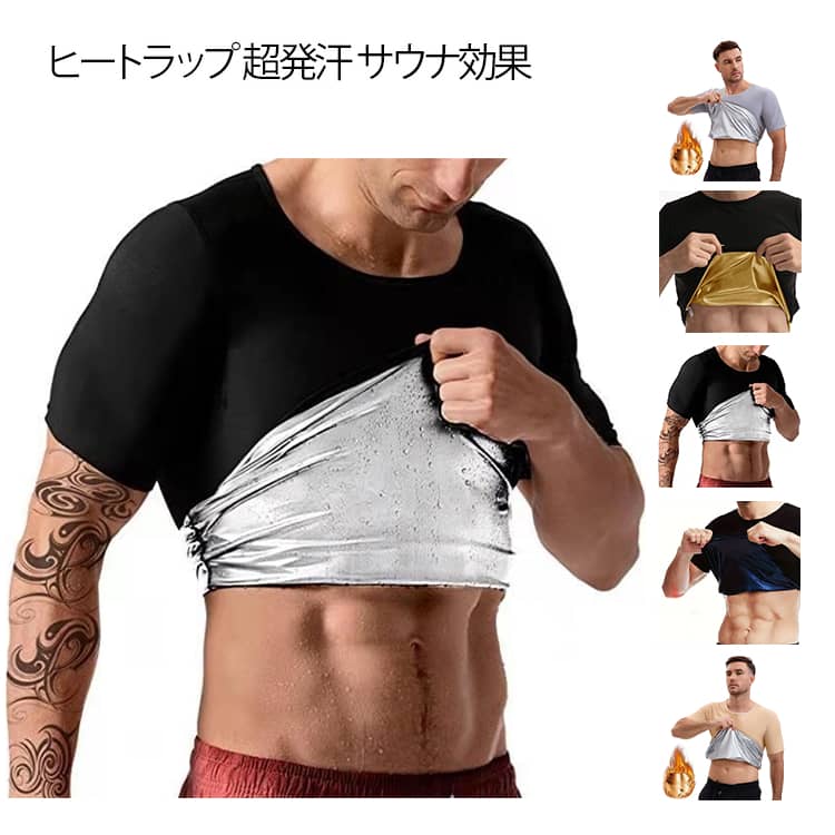 ヒートラップ 発汗効果 メンズ ラウンドネック インナー 発汗インナー サウナTシャツ 加圧シャツ ダイエット 半袖 アンダーウェア ヒートラップ スポーツウェア 着るだけケア 1,780 ~
