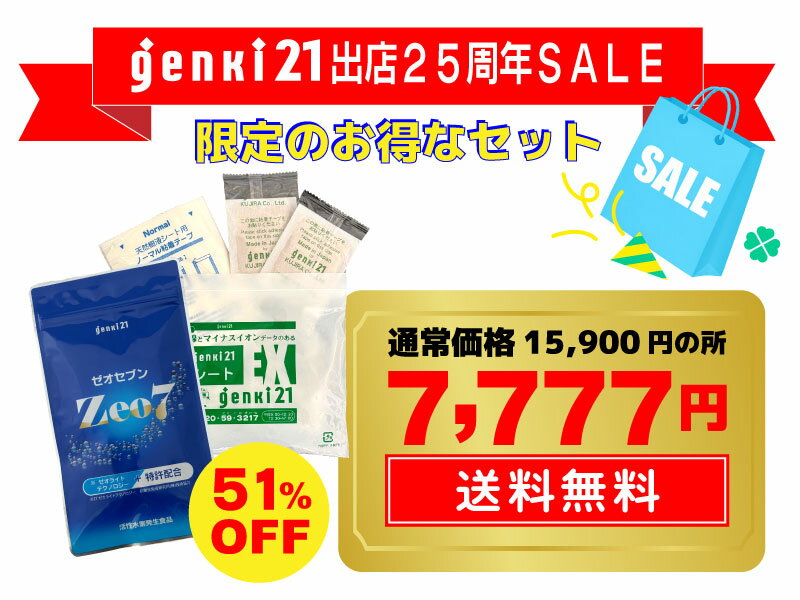 【送料無料】ポイント10倍【25周年SALE】genkiセット(Zeo7 120粒+薬草樹液シート26枚)元気を満喫できるお得なセット♪ 7,777 ~