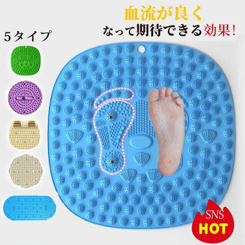 商品名 ・足つぼ マット ・指圧ボード/足裏マッサージ/マッサージマット/つぼ押し サイズ 40*58cm 45*75cm 素材 【本体】環境にやさしいTPE素材 カラー ブルー パープル グレー ご注意 【ご使用前に】 ご使用前には、必ず本品に破損や異常がないかをご確認ください。 割れ・欠け・ひび等が見られる場合は、安全のため使用を中止してください。 ● 安全に関するご注意 ・本商品には構造上、部品(磁石等)が外れる可能性がございます。 小さなお子様の手の届かない場所で保管し、誤飲などが起こらないよう十分ご注意ください。 ・お肌の弱い方、幼児、妊娠中の方、アレルギー体質の方、または皮膚に異常のある場合はご使用をお控えください。 ・持病のある方、通院中の方は、ご使用前に専門家へご相談のうえ、無理のない範囲でご使用ください。 ● 使用時のご注意 ・立った状態で使用する場合は、転倒の恐れがあります。 不安定な場所、狭い場所、滑りやすい床などは避け、周囲の安全を十分に確認したうえでご使用ください。 ・ご使用の際は、様子を見ながらゆっくりと足を乗せる、または軽く踏むようにしてください。 同じ箇所を長時間強く押し続けることは避けてください。 ・使用中に痛みや違和感を感じた場合は、直ちに使用を中止してください。 ● その他 ・本商品は日常生活でのリフレッシュや足裏刺激を目的としたものであり、 医療目的での使用は想定しておりません。 ・商品に関するご不明点は、ご購入店舗までお問い合わせください。 特徴 足裏への心地よい刺激でリフレッシュ ● 足裏刺激によるリラックスタイム 足裏は、日常生活の中で体重がかかりやすく、疲れを感じやすい部分です。 指圧ボードの凹凸に足を乗せたり、軽く踏むことで、足裏に心地よい刺激を与え、すっきりとした使用感を楽しめます。 ご自宅でのリラックスタイムや、気分転換におすすめです。 ● 日常生活を快適にサポート 本商品は、足裏へのやさしい刺激を通して、毎日のコンディションづくりをサポートします。 無理のないペースでご使用いただくことで、リフレッシュした気分やくつろぎの時間をお楽しみいただけます。 ● おうち時間に気軽にリフレッシュ テレビを見ながら、家事の合間など、天候を気にせずご自宅で手軽に使用できます。 足つぼリフレッシュマットの上でゆっくり足踏みするだけで、場所を取らず、 日常の運動サポートや気分転換、足裏への心地よい刺激を楽しめます。 ● ご使用開始時について 使い始めは、刺激を強く感じる場合があります。 その場合は、靴下を履く・タオルを敷く・椅子に座った状態で使用するなど、 無理のない方法から徐々に慣らしてご使用ください。 ● 立って使用する際のご注意 立った状態で使用する場合は、転倒の恐れがあります。 不安定な場所や滑りやすい床、狭い場所での使用は避け、 周囲の安全を十分に確認したうえでご使用ください。 なお、靴下やタオルを使用すると滑りやすくなる場合がありますので、 十分ご注意ください。 ● お手入れ方法について 汚れが気になる場合は、軽く湿らせた布やタオルで拭き取り、その後乾いた布でやさしく水分を拭き取ってください。 お手入れ後は、直射日光を避け、風通しのよい場所で十分に乾かしてからご使用ください。 汗などで濡れた場合も、必ず水分を拭き取り、完全に乾いた状態でご使用ください。 濡れたまま使用すると、滑りやすくなり転倒の原因となる場合がありますのでご注意ください。 ● 磁石部分について 使用状況により、磁石部分が外れることがあります。 外れた場合は、元の位置に戻していただければ、そのまま引き続きご使用いただけます。 関連ワード 足つぼマット 足ツボマット 足裏刺激 マット 足踏みマット 足ふみマット 指圧マット 指圧ボード フットマッサージマット 足裏マッサージマット ツボマット イボイボ マット 丸型 円形 ラグ マット 室内用 足踏み 室内運動 リフレッシュマット 健康グッズ 生活雑貨 フットケア 足裏ケア デスク下 マット 在宅用 マット おうち時間 グッズ 家庭用 マット 床マット 足元 マット 洗える マット 軽量 マット 折りたたみ マット コンパクト マット クッション マット 凹凸 マット 足刺激 プレート 足裏 プレート 足踏み プレート 円形 マット 足元 ケア グッズ フットリラックス グッズ 室内 歩行 マット デスクワーク 足元 足裏 リラックス マット 自宅 用 マット 日常 使い マット シンプル マット 男女兼用 マット商品名 ・足つぼ マット ・指圧ボード/足裏マッサージ/マッサージマット/つぼ押し サイズ 40*58cm 45*75cm 素材 【本体】環境にやさしいTPE素材 カラー ブルー パープル グレー ご注意 【ご使用前に】 ご使用前には、必ず本品に破損や異常がないかをご確認ください。 割れ・欠け・ひび等が見られる場合は、安全のため使用を中止してください。 ● 安全に関するご注意 ・本商品には構造上、部品(磁石等)が外れる可能性がございます。 