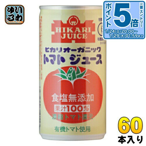 > こちらの商品の単品・まとめ買いはこちら【一個あたり 128円(税込)】※輸送時の横揺れによる缶製品の多少の凹みは避けられません。 飲用に差支えない凹みなどは返品保証の対象外とさせていただきます。 予めご了承頂けますようお願い申し上げます。 【賞味期間】製造後2年【商品説明】真っ赤に完熟したオーガニックトマトを使用した有機JAS認定トマトジュースです。 食塩無添加。 保存料、着色料不使用。 【名称および品名】オーガニック トマトジュース(濃縮トマト還元)【エネルギー】1缶(190g)あたり32kcal【栄養成分】たんぱく質 1.5g、脂質 0.2g、炭水化物 6.3g、ナトリウム 19mg、リコピン 15.0mg【原材料】有機トマト(輸入)【保存方法】常温【製造者、販売者、又は輸入者】光食品株式会社【変更事項】ページリニューアル日:2022/01/19変更内容:表示・パッケージ変更※北海道・沖縄県・離島(一部)へのお届けは決済時に送料無料となっていても追加送料が必要です。 (コカ・コーラ直送を除く)北海道1個口 715円(税込)、沖縄県1個口 2420円(税込)※離島・一部地域は追加送料がかかる場合があります。 追加送料の詳細は注文確定メールにてご案内いたします。 ※本商品はご注文タイミングやご注文内容によっては、購入履歴からのご注文キャンセル、修正を受け付けることができない場合がございます。 変更・修正ができない場合は、メール、お電話にてご連絡をお願い致します。 ■ 法人・団体のお客様 大口購入のご相談承ります ■法人のお客様、各種団体のお客様で、まとまった数量でのご購入をご検討の際は、お気軽にご相談ください。 お客様のご要望に合わせて柔軟に対応させていただきます。 まずはお気軽にお問い合わせフォームよりご連絡ください。 送料無料 野菜飲料 飲料 ドリンク 缶ジュース トマトジュース トマト 野菜ジュース 無塩 やさい とまと 濃縮 還元 有機トマト jas ケース まとめ買い セット 4952399710113 光食品 オーガニック トマトジュース 食塩無添加 190g 缶 60本 (30本入×2 まとめ買い) 〔野菜ジュース〕 7,646 ~