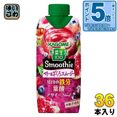 > こちらの商品の単品・まとめ買いはこちら【一個あたり 166円(税込)】【賞味期間】製造後9ヶ月【商品説明】1/2日分の野菜を使用※1し、1日分の鉄分※2と6〜37μgの葉酸が摂れます。 砂糖不使用です。 アサイーをブレンドし、ベリーとざくろの芳醇で甘酸っぱいおいしさの濃厚スムージーです。 ※1厚生労働省推進・健康日本21の目標値(1日350g)の1/2である野菜175g分 14種の野菜と5種類の果実※2栄養素等表示基準値(2015)に基づく。 野菜飲料は原料野菜の全成分を含むものではありませんが、不足しがちな野菜を補うためにお役立てください。 【名称および品名】野菜・果実ミックス飲料【エネルギー】330ml当たりあたり130kcal【栄養成分】たんぱく質 1.0g、脂質 0g、炭水化物 33.2g、糖質 30g、糖類 25.9g、食物繊維 3.2g、食塩相当量 0.06〜0.3g、カリウム 490mg、鉄 8.7mg、葉酸 6〜37 g【原材料】野菜(にんじん(輸入)、ケール、ほうれん草、アスパラガス、クレソン、パセリ、かぼちゃ、レタス、キャベツ、ビート、だいこん、はくさい、たまねぎ、セロリ)、果実(りんご、ラズベリー、ブルーベリー、ざくろ、レモン)、食物繊維、アサイーエキス/香料、クエン酸、ピロリン酸第二鉄【保存方法】常温【製造者、販売者、又は輸入者】カゴメ株式会社【アレルギー特定原材料】りんご【変更事項】ページリニューアル日:2025/04/09変更内容:パッケージ・内容品質※北海道・沖縄県・離島(一部)へのお届けは決済時に送料無料となっていても追加送料が必要です。 (コカ・コーラ直送を除く)北海道1個口 715円(税込)、沖縄県1個口 2420円(税込)※離島・一部地域は追加送料がかかる場合があります。 追加送料の詳細は注文確定メールにてご案内いたします。 ※本商品はご注文タイミングやご注文内容によっては、購入履歴からのご注文キャンセル、修正を受け付けることができない場合がございます。 変更・修正ができない場合は、メール、お電話にてご連絡をお願い致します。 ■ 法人・団体のお客様 大口購入のご相談承ります ■法人のお客様、各種団体のお客様で、まとまった数量でのご購入をご検討の際は、お気軽にご相談ください。 お客様のご要望に合わせて柔軟に対応させていただきます。 まずはお気軽にお問い合わせフォームよりご連絡ください。 送料無料 野菜ジュース Smoothie 鉄分 葉酸 やさい スムージー 濃厚スムージー 野菜ジュース 野菜ミックス飲料 野菜 果実 ベリー ざくろ 鉄分 食物繊維 1日分の鉄分 しっかり食物繊維 1/2日分の野菜 野菜汁 果汁 Smoothie 健康 美容 芳醇 甘酸っぱい 330ml 紙パック ケース まとめ買い セット 4901306008560 カゴメ 野菜生活100 スムージー ベリー&ざくろスムージー 330ml 紙パック 36本 (12本入×3 まとめ買い) 野菜ジュース Smoothie 鉄分 葉酸 砂糖不使用 5,940 ~