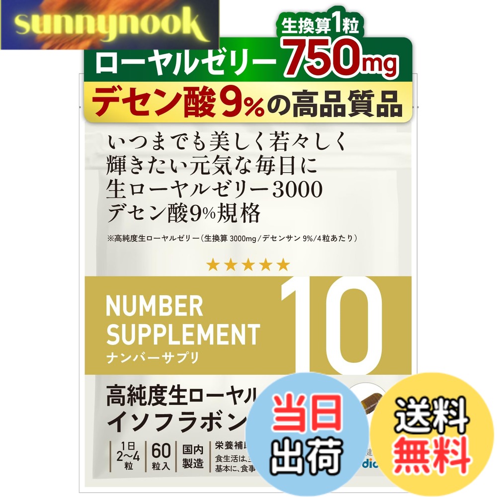 商品情報商品の説明主な仕様 【令和6年2月20日新発売】【高純度生ローヤルゼリー1粒で250mg(生換算750mg)デセン酸9%品の高配合!】「ナンバーサプリ10 高純度生ローヤルゼリー&イソフラボン」は、「いつまでも美しく若々しく」「輝きたい元気な毎日を過ごしたい」そんな方をサポートする為に10種類の成分を配合。 配合成分は高純度生ローヤルゼリー/デセンサン9%、大豆イソフラボン(アグリコン型)、レッドクローバー、ごま抽出物、高麗人参、DNA-Na、植物発酵エキス、ギャバ、葉酸、ビタミンCとなります。 高純度生ローヤルゼリー250mg /デセンサン9%規格(1粒あたり)は業界トップクラスの高配合量を実現。 ローヤルゼリーは中国湖北省にある「ISO9001:2008」「HACCP認証工場」で製造で良質のローヤルゼリーが生産可能で、ウィズメディカでは日本の基準を満たしたローヤルゼリーのみ国内のGMP認定工場で製造しています。 また、香料・着色料・保存料を使用せずに製造しています。 (1袋60粒入り/1日2粒から4粒目安/体調に合わせて飲む量をご調整ください)【いつまでも美しく若々しく輝きたい元気な毎日に】高純度生ローヤルゼリー、イソフラボンだけではなくウィズメディカ独自の追加栄養補助成分としてレッドクローバー ごま抽出物 高麗人参 DNA-Na 植物発酵エキス末 ギャバ 葉酸 ビタミンCも配合しています。 【全成分配合量を明記】ナンバーサプリは全成分配合量を開示しております。 身体に入れるサプリメントを正しくご理解・ご納得頂いた上で長くご愛用頂く事が大切だと考えます。 [ナンバーサプリ10 高純度生ローヤルゼリー&イソフラボン/1日2粒から4粒目安/体調に合わせて飲む量をご調整ください]1日4粒摂取した場合の成分配合量→高純度生ローヤルゼリー/デセン酸9%・・・1001.0mg(生換算3000mg)/大豆イソフラボン/アグリコン型・・・10.0mg/レッドクローバー・・・10.0mg/ごま抽出物・・・10.0mg/高麗人参・・・10.0mg/DNA-Na・・・8.6mg/植物発酵エキス末(234種類の野菜・果物)・・・10.0mg/ギャバ・・・9.0mg/葉酸・・・440/ビタミンC・・・30mgbr【日本国内で製造】徹底的に管理された日本国内のGMP認定工場で製造しています。 香料、保存料、着色料は一切使用していません。 【商品区分】高純度ローヤルゼリー サプリ サプリメント ローヤルゼリー ロイヤルゼリー 生ローヤルゼリー 生ロイヤルゼリー デセン酸9% レッドクローバー Red Clover 高麗人参 DNA-Na 植物発酵エキス ギャバ 葉酸 ビタミンC イソフラボン 生 無添加 デセン酸 高含有 国産 国産ローヤルゼリー カプセル 【送料無料】ナンバーサプリ10 ローヤルゼリー サプリ 高純度 デセン酸9%(1粒で生換算750mg)【10成分配合/全成分量明記】(国産 無添加 サプリメント/1袋60粒入り) サイズ:1袋 4,268 ~