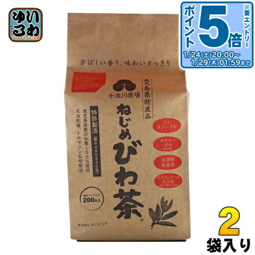 > こちらの商品の単品・まとめ買いはこちら【一個あたり 5184円(税込)】【賞味期間】製造後30ヶ月【商品説明】『ねじめびわ茶』は、『ねじめびわ茶』は、本土最南端の町、鹿児島県南大隅町根占(ねじめ)の農場で心を込めてつくっています。 お子さんからご高齢の方までが、毎日、安心して飲めるノンカフェインのお茶。 ティーバッグなので手軽においしく楽しめます。 【名称および品名】びわ茶ティーバッグ【エネルギー】100gあたり0kcal【栄養成分】(100g当たり)エネルギー0kcal、炭水化物0.1g、たんぱく質0g、ナトリウム0g、脂質3g【原材料】びわの葉【保存方法】直射日光を避け、常温で保存してください開封後はお早めにお飲み下さい【製造者、販売者、又は輸入者】農業生産法人 有限会社 十津川農場※北海道・沖縄県・離島(一部)へのお届けは決済時に送料無料となっていても追加送料が必要です。 (コカ・コーラ直送を除く)北海道1個口 715円(税込)、沖縄県1個口 2420円(税込)※離島・一部地域は追加送料がかかる場合があります。 追加送料の詳細は注文確定メールにてご案内いたします。 ※本商品はご注文タイミングやご注文内容によっては、購入履歴からのご注文キャンセル、修正を受け付けることができない場合がございます。 変更・修正ができない場合は、メール、お電話にてご連絡をお願い致します。 ■ 法人・団体のお客様 大口購入のご相談承ります ■法人のお客様、各種団体のお客様で、まとまった数量でのご購入をご検討の際は、お気軽にご相談ください。 お客様のご要望に合わせて柔軟に対応させていただきます。 まずはお気軽にお問い合わせフォームよりご連絡ください。 送料無料 根占枇杷茶 ノンカフェイン 無香料 無着色 ポリフェノール ティーバッグ 4984039194540 十津川農場 ねじめびわ茶 ティーバッグ 2g×200バック 2袋 (1袋入×2 まとめ買い) 10,368 ~