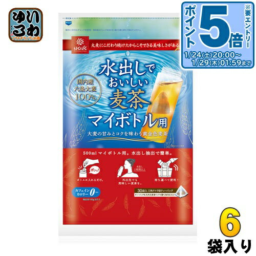 【一個あたり 443円(税込)】【賞味期間】製造後540日【商品説明】国内産六条大麦100%使用。 三角テトラ型ティーバッグでティーバッグを入れたままにしても苦くなりにくいのが特徴です。 500mlマイボトル用。 水出し抽出で簡単。 (1袋30袋入り)【名称および品名】ティーバッグ麦茶【エネルギー】抽出液100g あたり0kcal【栄養成分】たんぱく質0g、脂質0g、炭水化物0g、食塩相当量0g、カフェイン0mg【原材料】六条大麦(国産)【保存方法】常温【製造者、販売者、又は輸入者】株式会社はくばく※北海道・沖縄県・離島(一部)へのお届けは決済時に送料無料となっていても追加送料が必要です。 (コカ・コーラ直送を除く)北海道1個口 715円(税込)、沖縄県1個口 2420円(税込)※離島・一部地域は追加送料がかかる場合があります。 追加送料の詳細は注文確定メールにてご案内いたします。 ※本商品はご注文タイミングやご注文内容によっては、購入履歴からのご注文キャンセル、修正を受け付けることができない場合がございます。 変更・修正ができない場合は、メール、お電話にてご連絡をお願い致します。 ■ 法人・団体のお客様 大口購入のご相談承ります ■法人のお客様、各種団体のお客様で、まとまった数量でのご購入をご検討の際は、お気軽にご相談ください。 お客様のご要望に合わせて柔軟に対応させていただきます。 まずはお気軽にお問い合わせフォームよりご連絡ください。 送料無料 むぎちゃ むぎ茶 国産 水筒 みずだし ノンカフェイン テトラ型ティーバッグ 4902571271055 〔エントリーでポイント5倍!〕 はくばく 水出しでおいしい麦茶マイボトル用 300g 30バッグ×6袋入 2,656 ~