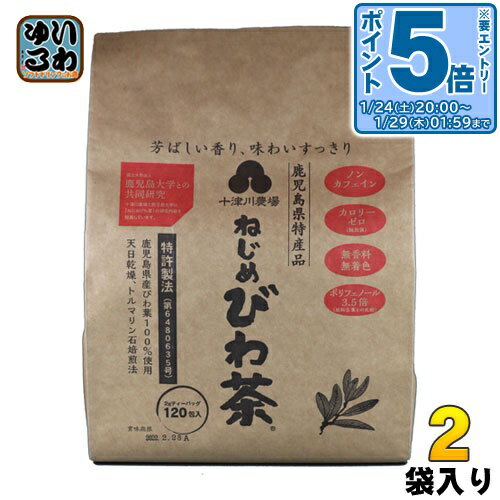 > こちらの商品の単品・まとめ買いはこちら【一個あたり 3327円(税込)】【賞味期間】製造後30ヶ月【商品説明】『ねじめびわ茶』は、『ねじめびわ茶』は、本土最南端の町、鹿児島県南大隅町根占(ねじめ)の農場で心を込めてつくっています。 お子さんからご高齢の方までが、毎日、安心して飲めるノンカフェインのお茶。 ティーバッグなので手軽においしく楽しめます。 【名称および品名】びわ茶ティーバッグ【エネルギー】100gあたり0kcal【栄養成分】(100g当たり)エネルギー0kcal、炭水化物0.1g、たんぱく質0g、ナトリウム0g、脂質2g【原材料】びわの葉【保存方法】直射日光を避け、常温で保存してください。 【製造者、販売者、又は輸入者】農業生産法人 有限会社 十津川農場※北海道・沖縄県・離島(一部)へのお届けは決済時に送料無料となっていても追加送料が必要です。 (コカ・コーラ直送を除く)北海道1個口 715円(税込)、沖縄県1個口 2420円(税込)※離島・一部地域は追加送料がかかる場合があります。 追加送料の詳細は注文確定メールにてご案内いたします。 ※本商品はご注文タイミングやご注文内容によっては、購入履歴からのご注文キャンセル、修正を受け付けることができない場合がございます。 変更・修正ができない場合は、メール、お電話にてご連絡をお願い致します。 ■ 法人・団体のお客様 大口購入のご相談承ります ■法人のお客様、各種団体のお客様で、まとまった数量でのご購入をご検討の際は、お気軽にご相談ください。 お客様のご要望に合わせて柔軟に対応させていただきます。 まずはお気軽にお問い合わせフォームよりご連絡ください。 送料無料 根占枇杷茶 ノンカフェイン 無香料 無着色 ポリフェノール ティーバッグ 4984039194519 〔エントリーでポイント5倍!〕 十津川農場 ねじめびわ茶 ティーバッグ 2g×120バック 2袋 (1袋入×2 まとめ買い) 〔お茶〕 6,652 ~