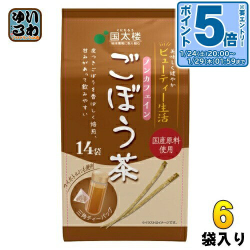 > こちらの商品の単品・まとめ買いはこちら【一個あたり 530円(税込)】【賞味期間】製造後730日【商品説明】国産の皮付きのごぼうを100%使用しています。 丁寧に乾燥・焙煎をして香ばしさと甘みを高めました。 ノンカフェインで、小さいお子様からシニアの方までおすすめです。 【内容量(1袋)】25.2g(1.8g×14P)【名称および品名】ごぼう茶(ティーバッグ)【エネルギー】ティーバッグ1包1.8gあたり6.84kcal【栄養成分】たんぱく質 0.14g、脂質 0.02g、炭水化物 1.52g、食塩相当量 0.001g【原材料】ごぼう【保存方法】常温【製造者、販売者、又は輸入者】株式会社 国太楼【アレルギー特定原材料】なし※北海道・沖縄県・離島(一部)へのお届けは決済時に送料無料となっていても追加送料が必要です。 (コカ・コーラ直送を除く)北海道1個口 715円(税込)、沖縄県1個口 2420円(税込)※離島・一部地域は追加送料がかかる場合があります。 追加送料の詳細は注文確定メールにてご案内いたします。 ※本商品はご注文タイミングやご注文内容によっては、購入履歴からのご注文キャンセル、修正を受け付けることができない場合がございます。 変更・修正ができない場合は、メール、お電話にてご連絡をお願い致します。 ■ 法人・団体のお客様 大口購入のご相談承ります ■法人のお客様、各種団体のお客様で、まとまった数量でのご購入をご検討の際は、お気軽にご相談ください。 お客様のご要望に合わせて柔軟に対応させていただきます。 まずはお気軽にお問い合わせフォームよりご連絡ください。 送料無料 お茶 牛蒡茶 ゴボウ茶 TB ティーバック ティーパック 国産ごぼう100% 無添加 無着色 16袋 HOT ICE お湯出し くにたろう ティーパック 三角バッグ お茶く健やか ビューティー生活 マイボトル TB 14P 14袋 14パック 14バック ノンカフェイン カフェインフリー ノンカフェインティー 国産原料使用 健康茶 4971617055102 〔エントリーでポイント5倍!〕 国太楼 ごぼう茶 三角ティーバッグ 1.8g×14P 6袋入 お茶 ティーパック 牛蒡茶 国産原料使用 ノンカフェイン 3,175 ~