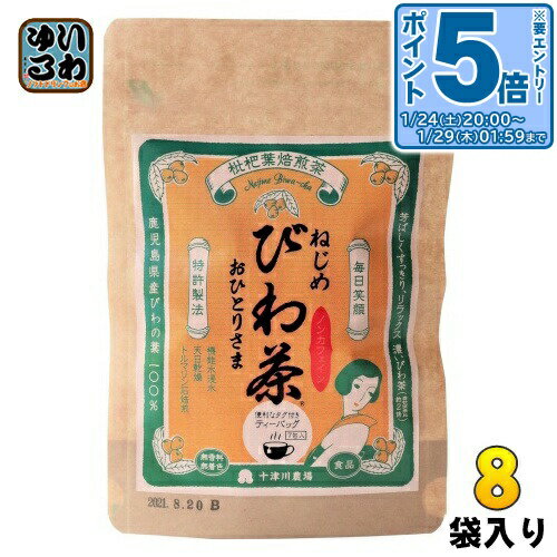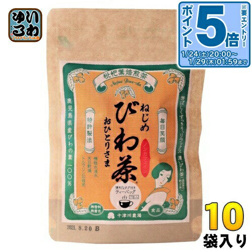 > こちらの商品の単品・まとめ買いはこちら【一個あたり 832円(税込)】【賞味期間】製造後30ヶ月【商品説明】『ねじめびわ茶』は、『ねじめびわ茶』は、本土最南端の町、鹿児島県南大隅町根占(ねじめ)の農場で心を込めてつくっています。 お子さんからご高齢の方までが、毎日、安心して飲めるノンカフェインのお茶。 ティーバッグなので手軽においしく楽しめます。 【名称および品名】びわ茶ティーバッグ【エネルギー】100gあたり0kcal【栄養成分】(100g当たり)エネルギー0kcal、炭水化物0.1g、たんぱく質0g、ナトリウム0g、脂質0g【原材料】びわの葉【保存方法】直射日光を避け、常温で保存してください。 開封後はお早めにお飲みください。 【製造者、販売者、又は輸入者】農業生産法人 有限会社 十津川農場※北海道・沖縄県・離島(一部)へのお届けは決済時に送料無料となっていても追加送料が必要です。 (コカ・コーラ直送を除く)北海道1個口 715円(税込)、沖縄県1個口 2420円(税込)※離島・一部地域は追加送料がかかる場合があります。 追加送料の詳細は注文確定メールにてご案内いたします。 ※本商品はご注文タイミングやご注文内容によっては、購入履歴からのご注文キャンセル、修正を受け付けることができない場合がございます。 変更・修正ができない場合は、メール、お電話にてご連絡をお願い致します。 ■ 法人・団体のお客様 大口購入のご相談承ります ■法人のお客様、各種団体のお客様で、まとまった数量でのご購入をご検討の際は、お気軽にご相談ください。 お客様のご要望に合わせて柔軟に対応させていただきます。 まずはお気軽にお問い合わせフォームよりご連絡ください。 送料無料 根占枇杷茶 ノンカフェイン 無香料 無着色 ポリフェノール ティーバッグ 4984039194571 〔エントリーでポイント5倍!〕 十津川農場 ねじめびわ茶 ティーバッグ 2g×24バック 5袋 (1袋入×5 まとめ買い) 4,158 ~
