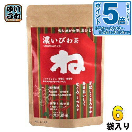 > こちらの商品の単品・まとめ買いはこちら【一個あたり 816円(税込)】【賞味期間】製造後30ヶ月【商品説明】『ねじめびわ茶』は、『ねじめびわ茶』は、本土最南端の町、鹿児島県南大隅町根占(ねじめ)の農場で心を込めてつくっています。 お子さんからご高齢の方までが、毎日、安心して飲めるノンカフェインのお茶。 ティーバッグなので手軽においしく楽しめます。 【名称および品名】びわ茶ティーバッグ【エネルギー】100gあたり0kcal【栄養成分】(100g当たり)エネルギー0kcal、炭水化物0.1g、たんぱく質0g、ナトリウム0g、脂質0g【原材料】びわの葉【保存方法】直射日光を避け、常温で保存してください。 開封後はお早めにお飲みください。 【製造者、販売者、又は輸入者】農業生産法人 有限会社 十津川農場※北海道・沖縄県・離島(一部)へのお届けは決済時に送料無料となっていても追加送料が必要です。 (コカ・コーラ直送を除く)北海道1個口 715円(税込)、沖縄県1個口 2420円(税込)※離島・一部地域は追加送料がかかる場合があります。 追加送料の詳細は注文確定メールにてご案内いたします。 ※本商品はご注文タイミングやご注文内容によっては、購入履歴からのご注文キャンセル、修正を受け付けることができない場合がございます。 変更・修正ができない場合は、メール、お電話にてご連絡をお願い致します。 ■ 法人・団体のお客様 大口購入のご相談承ります ■法人のお客様、各種団体のお客様で、まとまった数量でのご購入をご検討の際は、お気軽にご相談ください。 お客様のご要望に合わせて柔軟に対応させていただきます。 まずはお気軽にお問い合わせフォームよりご連絡ください。 送料無料 根占枇杷茶 ノンカフェイン 無香料 無着色 ポリフェノール ティーバッグ 4984039194571 〔エントリーでポイント5倍!〕 十津川農場 ねじめびわ茶 ティーバッグ 2g×24バック 6袋 (1袋入×6 まとめ買い) 4,892 ~