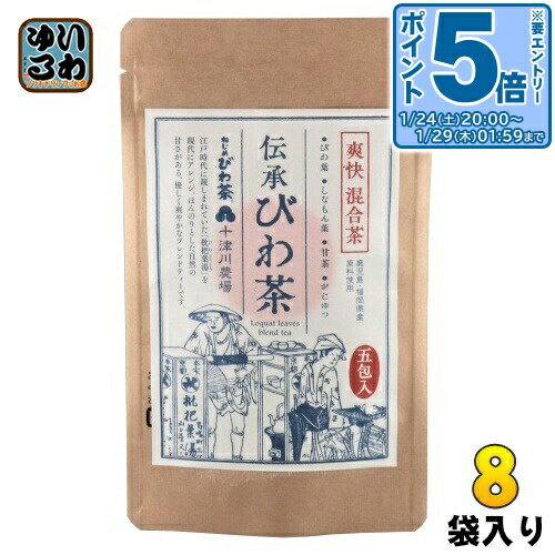 > こちらの商品の単品・まとめ買いはこちら【一個あたり 540円(税込)】【賞味期間】製造後720日【商品説明】「伝承びわ茶」は、九州産の「びわ茶」「甘茶」「ガジュツ」「シナモンの葉」4つの素材をブレンドしたブレンドティーです。 甘茶の自然な甘みと焙煎びわ茶の香ばしい香り、そこにほのかなガジュツとシナモンの葉のスパイシーさで絶妙な風味となるようブレンドしました。 《すべて植物生まれ優しく爽やかなブレンドティー》江戸時代の人々が楽しんでいたであろう「枇杷の葉混合茶」を今の時代に合わせて配合した『伝承びわ茶』。 びわ茶一筋の十津川農場が、自然豊かな九州産の原材料を探し回り、配合し、試作を繰り返しました。 ノンカフェインで無香料・無着色。 熱いままでも冷やしても美味しくお飲みいただけます。 優しく爽やかなひと時をお過ごしください。 《江戸時代の風物詩、「枇杷の葉混合茶」を今風に。 》びわの葉は、仏教とともに伝来し日本に定着しました。 江戸時代になると「枇杷の葉混合茶」が親しまれていました。 びわの葉にがじゅつ(紫うこん)・肉桂(しなもん)などをブレンドしたもので、爽やかで甘い香りが立ち込め、人々の五感までも潤していたといいます。 その工夫を現代に生かした『伝承びわ茶』は、甘茶の自然な甘みと焙煎びわ茶の芳ばしい香り、そこにかすかながじゅつとしなもんの葉のスパイシーさを絶妙な風味となるようブレンドしました。 熱いままでも、冷やしても、さらにはアレンジティーとしてもお愉しみいただけます。 新しいブレンドティーとして、ぜひご愛飲ください。 ●美味しい飲み方(1) ティーポットにティーバッグ1包を入れ、沸騰したお湯(500mL)を注ぎます。 (2) 3分程度で香りが立ってきたら飲み頃です。 粗熱を取って冷蔵庫で冷やしたり、濃いめに抽出し氷で割っても美味しくお飲みいただけます。 ●アレンジしてどこかエキゾチックで、ほのかにスパイシー。 甘い香りと味は、柑橘を浮かべて「オレンジ伝承びわ茶」、牛乳で割って「伝承びわ茶ラテ」にしても美味しくいただけます。 【名称および品名】びわ茶(ブレンドティー)【エネルギー】1包(2.6g)あたり9.3kcal【栄養成分】たんぱく質 0.3g、脂質 0.1g、炭水化物 1.8g、食塩相当量 0.7mg【原材料】びわの葉(鹿児島県産)、しなもんの葉(鹿児島県産)、甘茶(福岡県産)、がじゅつ(鹿児島県産)【保存方法】常温【製造者、販売者、又は輸入者】農業生産法人 有限会社 十津川農場【アレルギー特定原材料】なし※北海道・沖縄県・離島(一部)へのお届けは決済時に送料無料となっていても追加送料が必要です。 (コカ・コーラ直送を除く)北海道1個口 715円(税込)、沖縄県1個口 2420円(税込)※離島・一部地域は追加送料がかかる場合があります。 追加送料の詳細は注文確定メールにてご案内いたします。 ※本商品はご注文タイミングやご注文内容によっては、購入履歴からのご注文キャンセル、修正を受け付けることができない場合がございます。 変更・修正ができない場合は、メール、お電話にてご連絡をお願い致します。 ■ 法人・団体のお客様 大口購入のご相談承ります ■法人のお客様、各種団体のお客様で、まとまった数量でのご購入をご検討の際は、お気軽にご相談ください。 お客様のご要望に合わせて柔軟に対応させていただきます。 まずはお気軽にお問い合わせフォームよりご連絡ください。 送料無料 お茶 混合茶 ノンカフェイン 無香料 無着色 おちゃ 茶 ちゃ お茶飲料 飲料 ドリンク びわちゃ 枇杷 和製 ハーブブレンドティー ハーブティー ブレンドティー 爽快 鹿児島県産 福岡県産 とつがわのうじょう ねじめびわ茶 タグ付ティーバッグタイプ ティーバック ティーパック 五包入 5包入り 5バッグ 5パック 5バック ケース まとめ買い セット 4984039202016 〔エントリーでポイント5倍!〕 十津川農場 伝承びわ茶 ティーバッグ 2.6g×5包入 8袋 (1袋入×8 まとめ買い) お茶 健康茶 混合茶 ノンカフェイン 無香料 無着色 4,320 ~