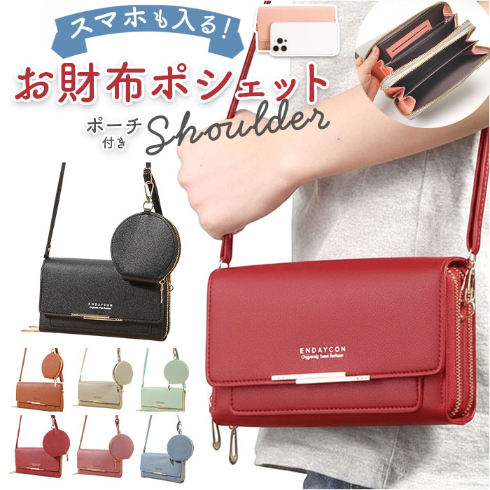 ショルダーバッグ レディース 斜めがけ 大人 通販 お財布ショルダー スマホショルダーバッグ 斜めがけバッグ お財布ポシェット 財布機能付き 横型 横長 女性 女子 スマホが入る財布 通勤 通学 旅行 シンプル きれいめ おしゃれ ラウンドファスナー 1,840 ~
