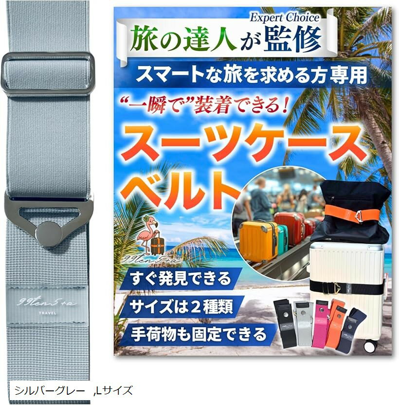 専門家監修 高タイパスーツケースベルト キャリーケースベルト スーツケースバンド キャリーケースバンド ストラップ バッグとめるベルト 目印 海外旅行 便利グッズ (シルバーグレー, Lサイズ) 1,780 ~