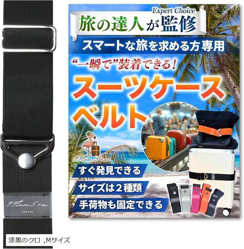 専門家監修 高タイパスーツケースベルト キャリーケースベルト スーツケースバンド キャリーケースバンド ストラップ バッグとめるベルト 目印 海外旅行 便利グッズ 漆黒のクロ Mサイズ 1,680 ~