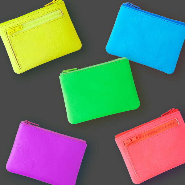 ここが特長! 目にも鮮やかな蛍光カラーレザーを使用した、お財布にもなるミニポーチです。 外ポケット付きのミニポーチでコンパクトながらカードケースはもちろんのことお財布代わりにもなります。 ちょっとしたお散歩から旅行用までひとつあると重宝する多機能ポーチです。 お札も二つ折りで収められ、外ポケットが小銭入れになります。 内側にカードポケットが2か所あり、電子マネーやクレジットカードなどもまとめておけます。 コンパクトながらメインのお財布としても使えるちょうどいいサイズ感です。 素材について ヴィヴィッドな蛍光カラーレザーで、ほど良いシボ感と鮮烈な発色は遊び心があり個性が際立ちます。 主な素材 表地:本革 裏地:シャンタン生地 仕上げ コバ縁返し仕上げ 同色ステッチ サイズ H100 x W130 x D15mm 重さ 約 52g 機能 メイン収納x1 カードポケットx2(メイン収納内) ファスナー付き片マチ小銭入れx1 個装 OPP袋入り 備考 ●本製品は本革製です。 ●スリップオンでは良質な革をお求めになりやすい価格で提供するため、血筋・トラ(首や関節のシワ)・小さな黒点などを避ける選別しておりません。 ●汗や雨等、湿気を帯びた場所でのご使用や摩擦により色移り・色落ちする場合があります。 ●容量を超えるものを差し込んだり過度に重いものを入れてご使用になると破損の原因となります。 ●用途以外の目的で使用しないでください。