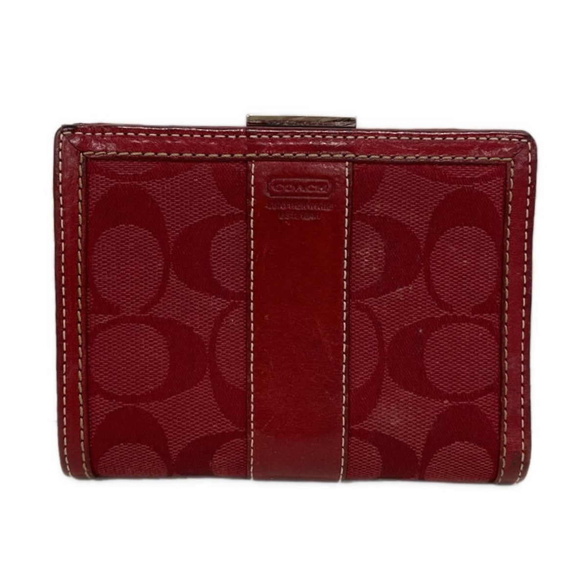 ※『USED品』です。 お客様都合による商品のご返品は一切承っておりませんので商品情報・画像を参考にご購入ください。 ≫ 配送について ≫よくある質問【中古】COACH(コーチ) シグネチャー柄 2つ折り財布 がま口 ボルドー レザー ジャンル 2つ折り財布 ブランド COACH(コーチ) 商品名 シグネチャー柄型番 -表記サイズ なし実寸サイズ 縦 : 約 10 cm横 : 約 13 cmマチ : 約 2 cm ・採寸方法を見る ・着用イメージを見るカラー ボルドーデザイン -がま口■札入れ ⇒ 2箇所■小銭入れ ⇒ 1箇所■カード入れ ⇒ 8箇所■ポケット ⇒ 4箇所 素材 ジャガード×レザーコンディションレベル 【C】ふつうに使える コンディションの備考 【外側】 ・全体的 ⇒ 傷目立つ / 擦れ目立つ / 汚れ若干 / シミ若干 / 型崩れ若干 ・四つ角 ⇒ 擦れ目立つが破れなし ・サイド ⇒ 変色全体的あり、目立つ【内側】 ・全体的 ⇒ 小傷 / 汚れ若干 / 型崩れ若干 ・小銭入れ内側 ⇒ 薄らと汚れ製造番号・刻印 -シリアル *** 付属品 なし 【新着】【中古】COACH(コーチ) シグネチャー柄 2つ折り財布 がま口 ボルドー レザー 5,605 ~