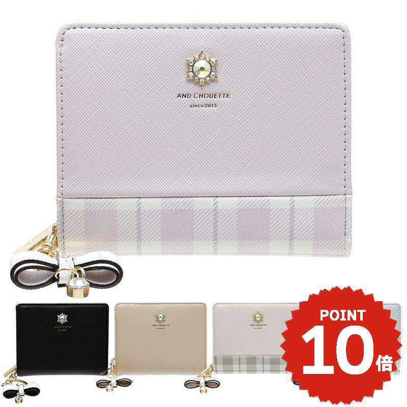 \ギフトラッピング無料/【チャームセット品】 財布 レディース 二つ折り アンドシュエット chouette ブランド ビジュー チェック シンプル 折 ファスナー コンパクト 大人 かわいい おしゃれ 可愛い 合皮 チャーム サマンサ 19,800 ~