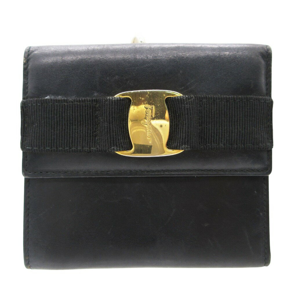 Salvatore Ferragamo サルバトーレフェラガモ レザー ヴァラリボン 3つ折り 財布 ウォレット ブラック レディース 【中古】 4,300 ~