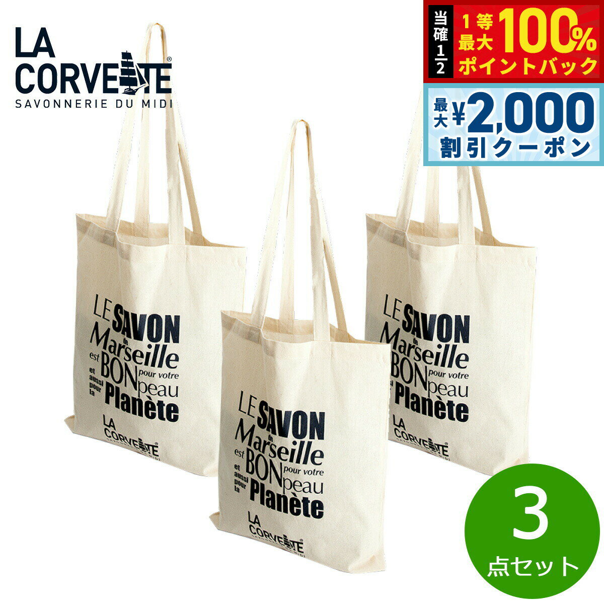 【3/25は当店限定Wイベント!10%OFFクーポン&抽選で最大10000ptバック】LA CORVETTE ラ コルベット オーガニックコットントートバッグ 3点セット 4,950 ~
