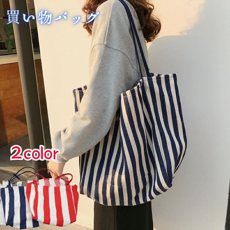 通学 通勤 マザーズバッグ 買い物バッグ ストライプ エコバッグ レディース トートバッグ ショルダーバッグ 帆布 1,699 ~