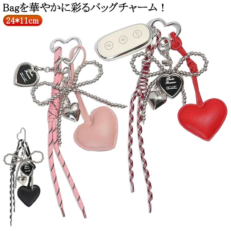 キーホルダー チャーム キーホルダー ストラップ バッグチャーム リボン ハート かわいい モチ パラコード チャーム ストラップ 2,199 ~
