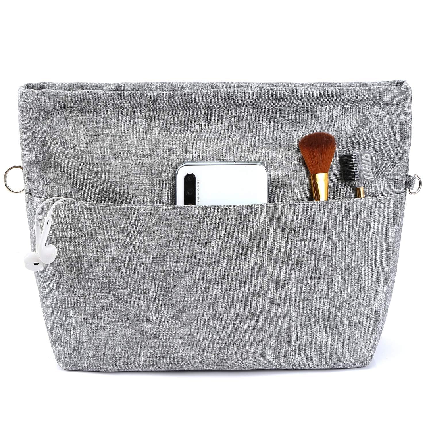 商品情報商品の説明主な仕様 自立/型崩れ防止。 硬度がちょうどよい高級ナイロン素材で作られて、様々なカバンに適しています。 単独で使うときはしっかり立つことができ、カバンの中に置いた時はバッグのへたる形も安定します。 仕切り13個で鞄の中整理整頓。 ゴチャゴチャしているバッグの中がすっきりと片付きます。 内容物が一目瞭然で、取り出し易く使いやすい鞄になります。 汎用性が高い機能ポケット。 貴重品や化粧品、携帯、長財布、鍵、カードなど専用のポケットがあり、小物を種類別で整理できます。 中身ポケットはマチがあり、汎用性が高いです。 盗難防止/中身隠す。 ファスナーで上部が閉じられて中身が見えなくなり、防犯上に役立ます。 倒れても小物が落ちないし、そのままカバンから取出して化粧室で使用にも便利です。 バッグ交換便利。 一つにまとめることができ、出かける際にそのまま別のバッグに入れ替えられで便利です。 防水素材は通勤、通学、買い物、旅行や出張の時に鞄を汚れから守ります。