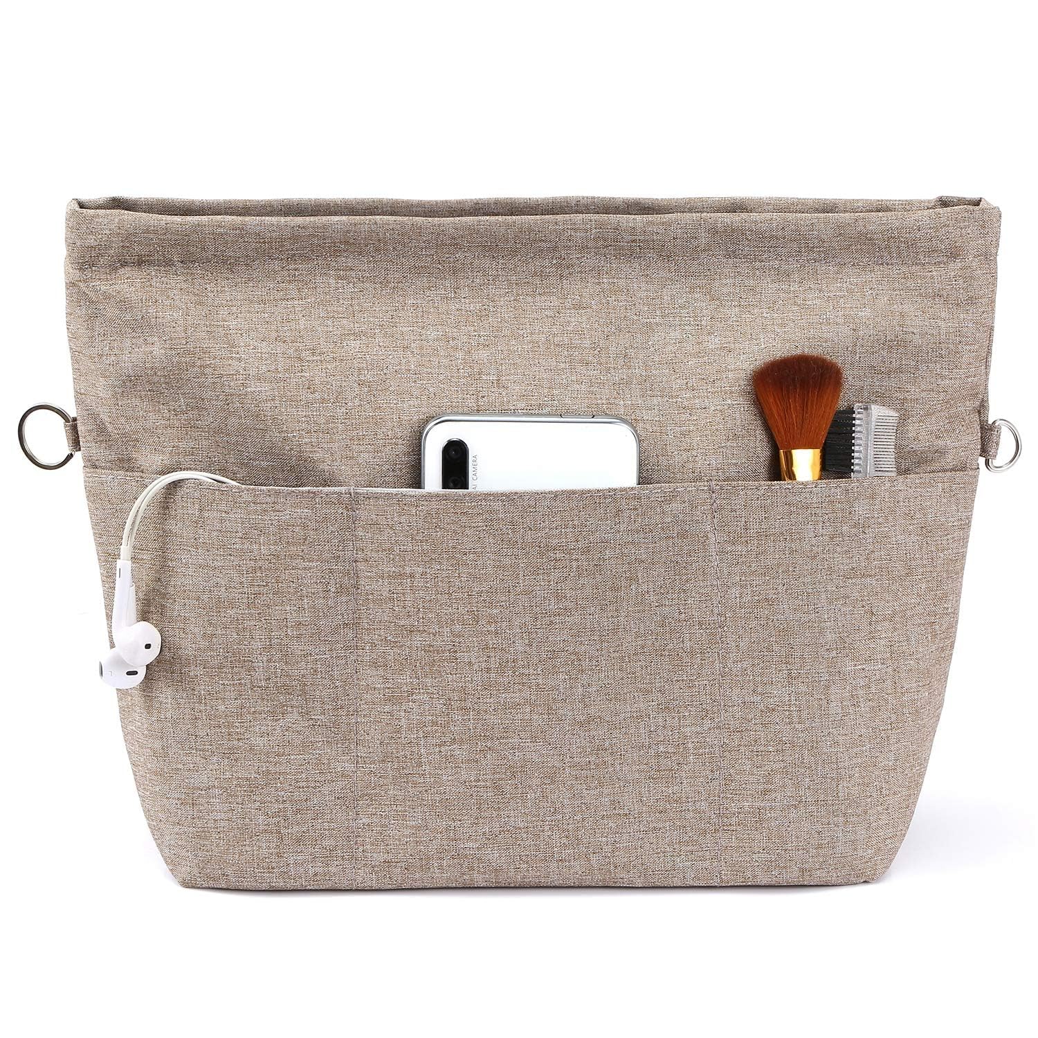 商品情報商品の説明主な仕様 自立/型崩れ防止。 硬度がちょうどよい高級ナイロン素材で作られて、様々なカバンに適しています。 単独で使うときはしっかり立つことができ、カバンの中に置いた時はバッグのへたる形も安定します。 仕切り13個で鞄の中整理整頓。 ゴチャゴチャしているバッグの中がすっきりと片付きます。 内容物が一目瞭然で、取り出し易く使いやすい鞄になります。 汎用性が高い機能ポケット。 貴重品や化粧品、携帯、長財布、鍵、カードなど専用のポケットがあり、小物を種類別で整理できます。 中身ポケットはマチがあり、汎用性が高いです。 盗難防止/中身隠す。 ファスナーで上部が閉じられて中身が見えなくなり、防犯上に役立ます。 倒れても小物が落ちないし、そのままカバンから取出して化粧室で使用にも便利です。 バッグ交換便利。 一つにまとめることができ、出かける際にそのまま別のバッグに入れ替えられで便利です。 防水素材は通勤、通学、買い物、旅行や出張の時に鞄を汚れから守ります。