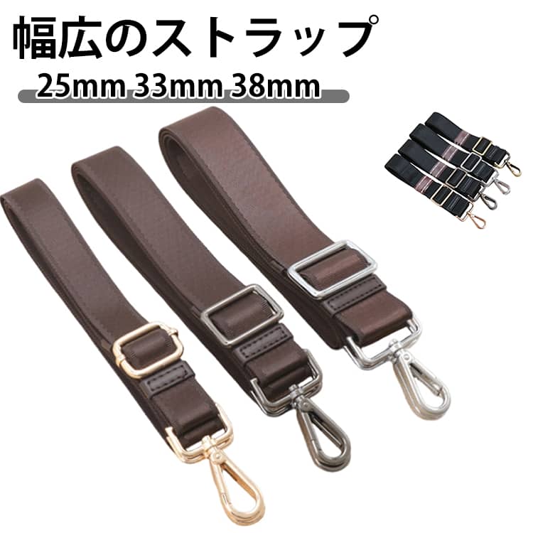 スタイルを変える。 機能も変わる。 バッグのスタイルを選ばない、使いやすさを重視した幅広のストラップ。 バッグをリュックに。 追加ベルトで見える新たなスタイル。 ワイドなベルトが重さを分散。 荷物を減らさず身軽になれる。 ストラップはサイズ調整可能。 長めの状態で斜め掛けにして腰のあたりで使ったり、短くしてトートバッグの様にかけたりと、あなたの気分に合わせてスタイルチェンジ。 サイズ 幅2.5cm黒金具 幅2.5cm白金具 幅2.5cm金金具 幅3.3cm黒金具 幅3.3cm白金具 幅3.3cm金金具 幅3.8cm黒金具 幅3.8cm白金具 幅3.8cm金金具 サイズについての説明 フリーサイズ:全長146cm 90-165cmサイズ調節可能 素材 ポリエステル 色 黒 茶 備考 ●サイズ詳細等の測り方はスタッフ間で統一、徹底はしておりますが、実寸は商品によって若干の誤差(1cm?3cm )がある場合がございますので、予めご了承ください。 ●製造ロットにより、細部形状の違いや、同色でも色味に多少の誤差が生じます。 ●パッケージは改良のため予告なく仕様を変更する場合があります。 ▼商品の色は、撮影時の光や、お客様のモニターの色具合などにより、実際の商品と異なる場合がございます。 あらかじめ、ご了承ください。 ▼生地の特性上、やや匂いが強く感じられるものもございます。 数日のご使用や陰干しなどで気になる匂いはほとんど感じられなくなります。 ▼同じ商品でも生産時期により形やサイズ、カラーに多少の誤差が生じる場合もございます。 ▼他店舗でも在庫を共有して販売をしている為、受注後欠品となる場合もございます。 予め、ご了承お願い申し上げます。 ▼出荷前に全て検品を行っておりますが、万が一商品に不具合があった場合は、お問い合わせフォームまたはメールよりご連絡頂けます様お願い申し上げます。 速やかに対応致しますのでご安心ください。