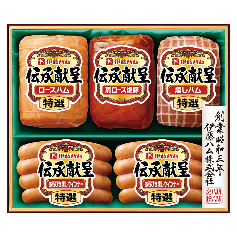 【商品説明】守り伝えられた伝統の技を用い丹念に造り上げました。 バラエティに富んだおいしさを詰合せたギフトセットです。 【内容】特選ロースハム(320g)・肩ロース焼豚(185g)・特選燻しハム(180g)×各1、特選あらびき燻しウインナー(80g)×2 【型番】IMA-50 【箱サイズ】化粧箱:約236×281×65mm(入) 【賞味期限】製造日より冷蔵保存で約55日 【アレルギー】卵・小麦 伊藤ハム 伝承献呈ギフトセット 【商品引換券】【即納商品】 7,620 ~