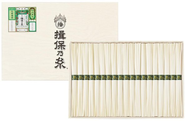 伝承 播州そうめん 木箱入り 【3箱セット/50g×計30束】 約600年以上の歴史を誇る 兵庫県播州地区の 伝統技術で仕上げた美味しいそうめん。 麺作りが日本で一番盛んな、そうめんの名産地播州地区(兵庫県南西部) で作られたおいしいそうめんを、プレミアム感のある木箱に収めました。 ゆで時間2分で夏の食卓を涼しく演出します。 にゅう麺にしても美味しくお召し上がりいただけます。 夏場の食卓はもちろん、冬場など季節を問わずお楽しみいただけます。 プレゼントにも最適な高級感溢れる木箱入り。 お中元やお歳暮など季節の贈り物や、内祝いなどの ちょっとした手土産にも喜ばれる逸品です。 ■ 商品仕様 ■ 名称 そうめん 原材料名 小麦粉(国内製造)、食塩 製めん地 兵庫県 内容量 1500g(50g×計30束) パッケージサイズ 縦21cm×横16.8cm×厚さ3cm 賞味期限 賞味期限は約1年の商品をお届けしております。 ※在庫状況により日数が前後する場合があります 保存方法 高温多湿を避け、常温保存 調理方法 茹で時間 : 約2分 加工者 (有)食彩倶楽部ひめじ兵庫県姫路市継147-1TEL : 079-245-8108※ 当工場は、そば粉を含む製品を製造しています。 栄養成分表示 (100g当り) エネルギー : 349kcalたんぱく質 : 9.9g脂質 : 1.7g炭水化物 : 73.4g食塩相当量 : 3.6gゆで後100g当りの食塩相当量 : 0.36g(推定値) ・ 入荷時期によってパッケージは多少異なる場合があります。 ・ 掲載画像はイメージであり、実際の製品とは多少異なる場合があります。 ・ 製品の仕様は品質の向上・改善のため、予告なく変更となる場合があります。
