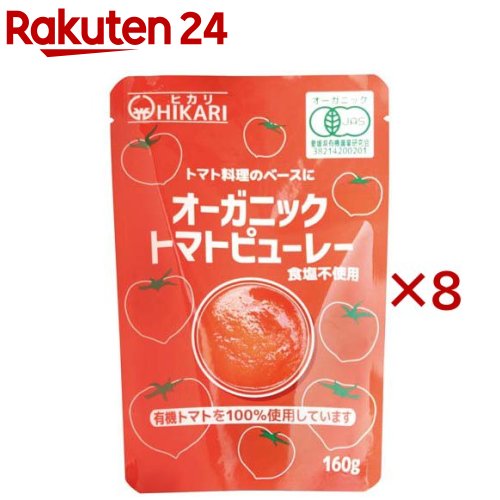 お店TOP>フード>調味料・油>トマト調味料>トマトピューレ・ペースト>オーガニックトマトピューレー (160g×8セット)商品区分:有機JAS認定【オーガニックトマトピューレーの商品詳細】●有機トマトをおよそ3倍に濃縮した有機JAS認証のトマトピューレーです。 ●食塩不使用でいろいろな料理にお使いいただけます。 ●真っ赤に完熟した海外産有機トマトと国産有機トマトを使用しています。 ●食塩は使用していません。 【品名・名称】有機トマトピューレー【オーガニックトマトピューレーの原材料】有機トマト(輸入、国産)【栄養成分】1袋(160g)当たり熱量(kcal):88、たんぱく質(g):3.5、脂質(g):0.8、炭水化物(g):16.5、食塩相当量(g):0.13、ナトリウム(mg):51.2【保存方法】直射日光、高温多湿を避けて保存してください【発売元、製造元、輸入元又は販売元】光食品※説明文は単品の内容です。 リニューアルに伴い、パッケージ・内容等予告なく変更する場合がございます。 予めご了承ください。 ・単品JAN:4952399410303光食品徳島県板野郡上板町高瀬127-3088-637-6123広告文責:楽天グループ株式会社電話:050-5577-5043[ジャム・ペースト] オーガニックトマトピューレー(160g×8セット) 2,397 ~