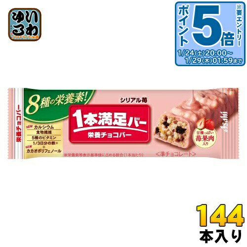 > こちらの商品の単品・まとめ買いはこちら【一個あたり 137円(税込)】【賞味期間】製造後1年【商品説明】手軽においしく栄養補給ができる「栄養チョコバー」です。 8種の栄養素(食物繊維・5種のビタミン※・1/3日分の鉄*・カルシウム)とカカオポリフェノールを配合。 爽やかな苺風味のチョコで、ザクザク食感のシリアルをコーティング。 甘酸っぱい苺果肉入り。 苺果肉と、レーズンのほのかな酸味がアクセント!【名称および品名】栄養チョコバー【エネルギー】1本あたり197kcal【栄養成分】たんぱく質:1.6g、脂質:11g、炭水化物:23.8g、?糖質:22g、??糖類:15g、?食物繊維:1.8g、食塩相当量:0.13g、カルシウム:48mg、鉄:4.2mg、ビタミンB1:0.21mg、ビタミンB2:0.26mg、ビタミンB6:0.19mg、ビタミンB12:0.2〜0.8μg、ビタミンE:1.4〜3.1mg【原材料】準チョコレート(植物油脂、乳糖、砂糖、全粉乳、ココアバター)(国内製造)、コーンフレーク(コーングリッツ、砂糖、その他)、レーズン、小麦パフ(小麦粉、でん粉、モルトエキス)、イソマルトデキストリン、苺加工品、苺パウダー、フルーツソース、乳等を主要原料とする食品、カカオ豆エキスパウダー/乳化剤(大豆由来)、酸味料、香料、炭酸Ca、ピロリン酸第二鉄、ベニコウジ色素、酸化防止剤(V.E)、V.B 、V.B 、V.B 、V.E、V.B 【保存方法】28℃以下で保存【製造者、販売者、又は輸入者】アサヒグループ食品株式会社【アレルギー特定原材料】小麦、乳、大豆【変更事項】ページリニューアル日:2025/08/13変更内容:パッケージ、原材料※北海道・沖縄県・離島(一部)へのお届けは決済時に送料無料となっていても追加送料が必要です。 (コカ・コーラ直送を除く)北海道1個口 715円(税込)、沖縄県1個口 2420円(税込)※離島・一部地域は追加送料がかかる場合があります。 追加送料の詳細は注文確定メールにてご案内いたします。 ※本商品はご注文タイミングやご注文内容によっては、購入履歴からのご注文キャンセル、修正を受け付けることができない場合がございます。 変更・修正ができない場合は、メール、お電話にてご連絡をお願い致します。 ■ 法人・団体のお客様 大口購入のご相談承ります ■法人のお客様、各種団体のお客様で、まとまった数量でのご購入をご検討の際は、お気軽にご相談ください。 お客様のご要望に合わせて柔軟に対応させていただきます。 まずはお気軽にお問い合わせフォームよりご連絡ください。 送料無料 栄養菓子 おかし 食品 いちご シリアル イチゴ 果肉 ちゃっかり補給 ヘルシー 手軽 食物繊維 ビタミン 鉄 チョコ菓子 レーズン バランス栄養食 4946842529681 〔エントリーでポイント5倍!〕 アサヒグループ食品 1本満足バー シリアル苺 144本 (72本入×2 まとめ買い) 準チョコ 菓子 一本満足 19,595 ~