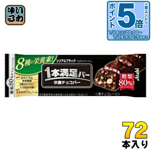 > こちらの商品の単品・まとめ買いはこちら【一個あたり 142円(税込)】【賞味期間】製造後1年【商品説明】手軽においしく栄養補給ができる「栄養チョコバー」です。 8種の栄養素(食物繊維・5種のビタミン※・1/3日分の鉄*・カルシウム)とカカオポリフェノールを配合。 ほろ苦い甘さ控えめのブラックチョコで、ザクザク食感のシリアルをコーティング。 糖類80%オフ(当社シリアルチョコ比)。 大きめにカットしたマカダミアナッツの香ばしさと食感がアクセント!【名称および品名】栄養チョコバー【エネルギー】1本あたり183kcal【栄養成分】たんぱく質:2.4g、脂質:10g、炭水化物:22.9g、?糖質:19g、??糖類:1.8g、?食物繊維:3.9g、食塩相当量:0.14g、カルシウム:61mg、鉄:5.0mg、ビタミンB1:0.20mg、ビタミンB2:0.22mg、ビタミンB6:0.19mg、ビタミンB12:0.2〜0.7μg、ビタミンE:1.2〜2.5mg【原材料】準チョコレート(マルチトール、植物油脂、ココアパウダー、カカオマス、デキストリン)(乳成分を含む)(国内製造)、コーンフレーク(コーングリッツ、砂糖、その他)、マカダミアナッツ、小麦パフ(小麦粉、でん粉、モルトエキス)(大豆を含む)、レーズン、イソマルトデキストリン、カカオ豆エキスパウダー、食塩/乳化剤、炭酸Ca、香料、ピロリン酸第二鉄、甘味料(スクラロース)、酸化防止剤(V.E)、V.B 、V.B 、V.B 、V.E、酸味料、V.B 【保存方法】28℃以下で保存【製造者、販売者、又は輸入者】アサヒグループ食品株式会社【アレルギー特定原材料】小麦、乳、大豆【変更事項】ページリニューアル日:2025/08/13変更内容:パッケージ、原材料※北海道・沖縄県・離島(一部)へのお届けは決済時に送料無料となっていても追加送料が必要です。 (コカ・コーラ直送を除く)北海道1個口 715円(税込)、沖縄県1個口 2420円(税込)※離島・一部地域は追加送料がかかる場合があります。 追加送料の詳細は注文確定メールにてご案内いたします。 ※本商品はご注文タイミングやご注文内容によっては、購入履歴からのご注文キャンセル、修正を受け付けることができない場合がございます。 変更・修正ができない場合は、メール、お電話にてご連絡をお願い致します。 ■ 法人・団体のお客様 大口購入のご相談承ります ■法人のお客様、各種団体のお客様で、まとまった数量でのご購入をご検討の際は、お気軽にご相談ください。 お客様のご要望に合わせて柔軟に対応させていただきます。 まずはお気軽にお問い合わせフォームよりご連絡ください。 送料無料 栄養調整食品 スポーツ フィットネス たんぱく質 ビタミン アミノ酸 バランス栄養食 手軽 軽食 食品 4946842522682 〔エントリーでポイント5倍!〕 アサヒグループ食品 1本満足バー シリアルブラック 糖類80%オフ 72本入 準チョコ 菓子 一本満足 10,186 ~