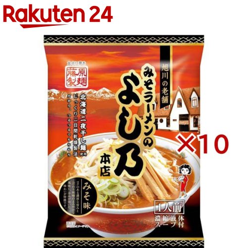 お店TOP>フード>穀物・豆・麺類>ラーメン>インスタント麺(袋)>旭川みそラーメンのよし乃本店 みそ味 (125g*10コ)【旭川みそラーメンのよし乃本店 みそ味の商品詳細】●旭川の味噌ラーメンといえば「よし乃」と言われるほど地元で愛されているラーメン店の味を再現しました。 ●ラードとにんにくでこってり感を引き出し、生姜、豆板醤でアクセント効かせた濃厚スープが決め手●麺は生麺をじっくり2日乾燥させ生麺のような味わいです。 【召し上がり方】(1)水550ml(カップ3杯弱)が沸とうしたところでめんを入れ、4分半ゆでてください。 ※途中で麺どうしがくっ付かないように、箸等で十分かき回してください。 (2)めんがゆであがりましたら火を止め、スープを入れよくかきまぜてください。 ※お湯の量やめんのゆで時間は目安ですので、お好みにより調整してください。 (3)丼に移しお召しあがりください。 焼豚、メンマ、季節の野菜など入れますと、より一層おいしく召しあがれます。 【品名・名称】即席中華めん【旭川みそラーメンのよし乃本店 みそ味の原材料】めん(小麦粉(国内製造)、卵白粉、食塩、小麦たん白)、味噌、ラード、砂糖、ガーリックペースト、オニオンペースト、日本酒、食塩、ジンジャーペースト、香辛料、豆板醤、ごま油/調味料(アミノ酸等)、かんすい、着色料(カラメル、クチナシ)、(一部に卵・小麦・ごま・大豆・豚肉を含む)【栄養成分】・エネルギー390Kcal・たんぱく質12.4g・脂質9.9g・炭水化物62.7g・食塩相当量6.5g【アレルギー物質】卵・小麦・ごま・大豆・豚肉【規格概要】内容量:125g(めん70g、スープ55g)【保存方法】直射日光・高温・多湿の場所をさけて保存してください【注意事項】・調理器具の取り扱いや熱湯のふきこぼれには充分、ご注意ください。 ・時により、黒い斑点がめんの表面に若干でることがあります。 これは小麦粉の性質によるもので品質に異常ありません。 ・内袋開封後は保存がききませんので必ず使い切ってください。 ・においが強いものと一緒に保存しないでください。 ・直射日光・高温・多湿の場所をさけて保存してください。 ・本品製造工場では、そばを含む製品を製造しております。 【原産国】日本【ブランド】藤原製麺【発売元、製造元、輸入元又は販売元】藤原製麺※説明文は単品の内容です。 リニューアルに伴い、パッケージ・内容等予告なく変更する場合がございます。 予めご了承ください。 (旭川ミソラーメンのよし乃本店 旭川味噌ラーメンのよし乃本店 旭川みそラーメンのよしの本店 旭川ミソラーメンのよしの本店 旭川味噌ラーメンのよしの本店 味噌味 ミソ味)・単品JAN:4976651082435藤原製麺070-0039 北海道旭川市9条通14丁目左10号0120-26-5485広告文責:楽天グループ株式会社電話:050-5577-5043[麺類/ブランド:藤原製麺/] 旭川みそラーメンのよし乃本店 みそ味(125g*10コ)【藤原製麺】 2,192 ~